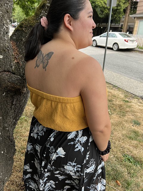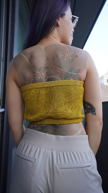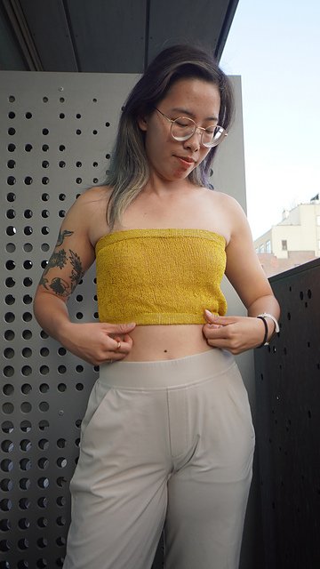 This sweet & simple summer knit is a thoughtful, wearable re-imagining of the classic bandeau. The design features options for creating a shorter, more fitted bralette with a ruched front, or a longer, looser tube top with more gathers...