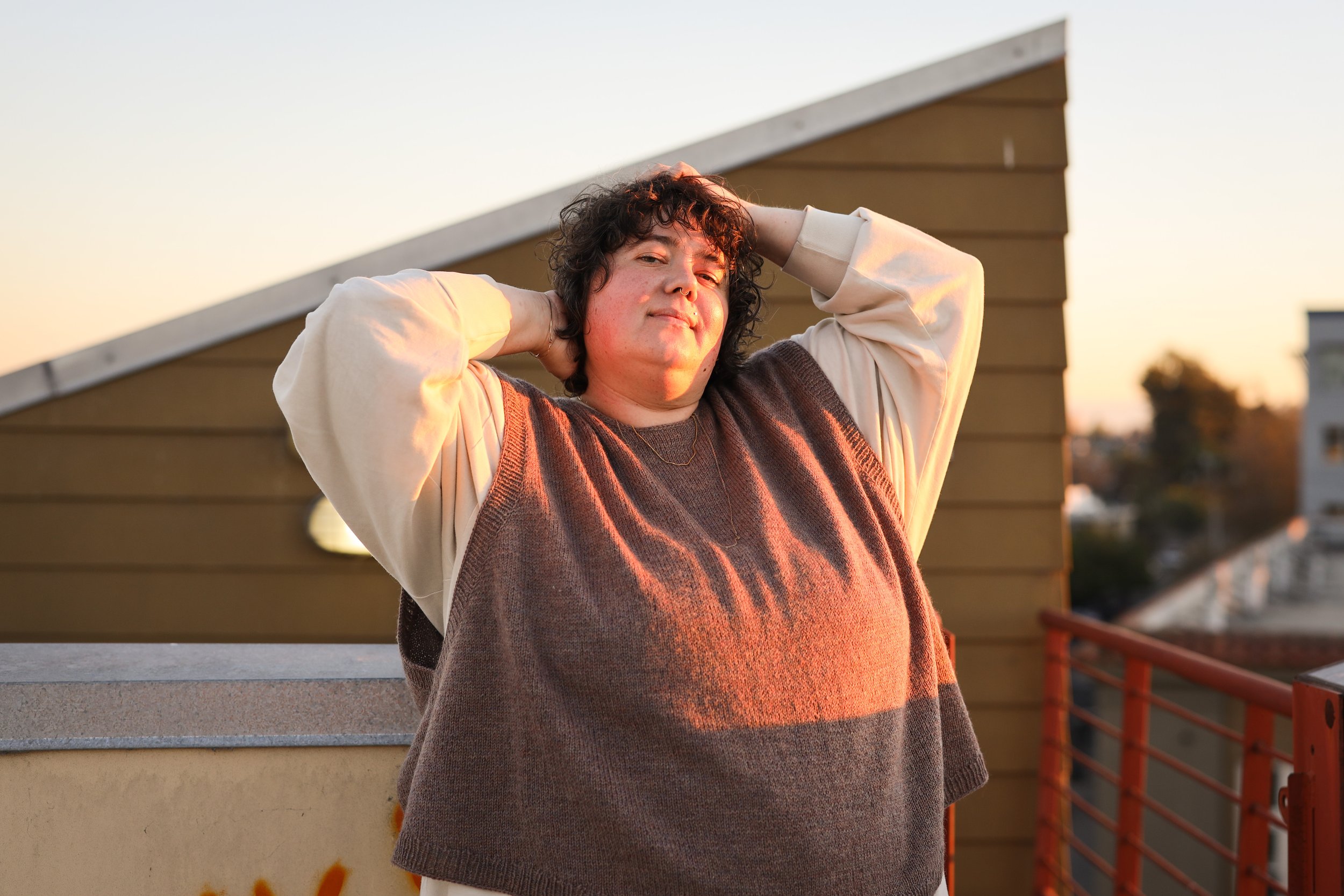 CANYON is an oversized tank/vest with a fitted crew neck and deep armholes. It features seamless top-down construction, with an applied i-cord for the neck and optional bust darts added at the hem (for a more invisible, gender-neutral look).