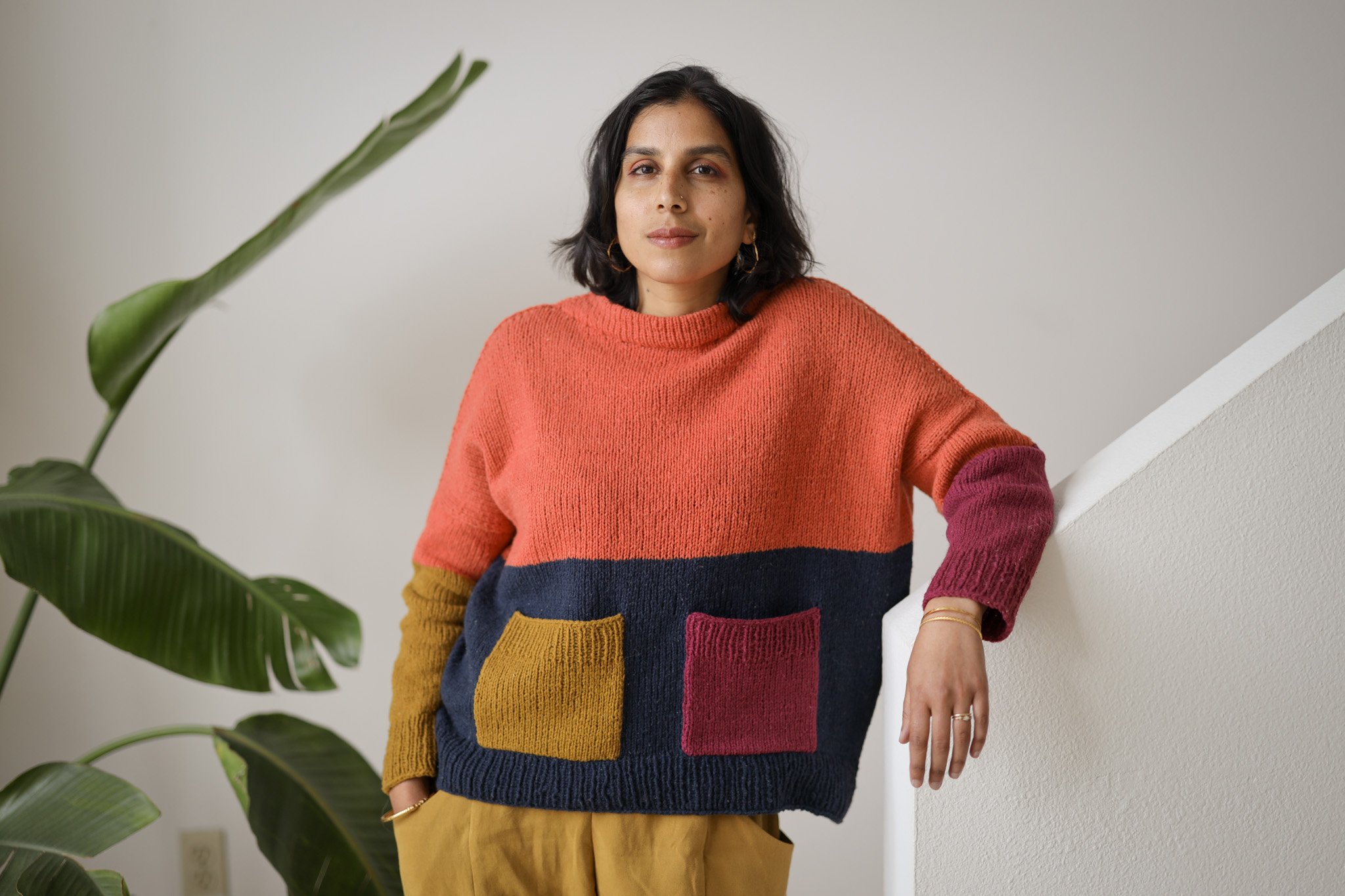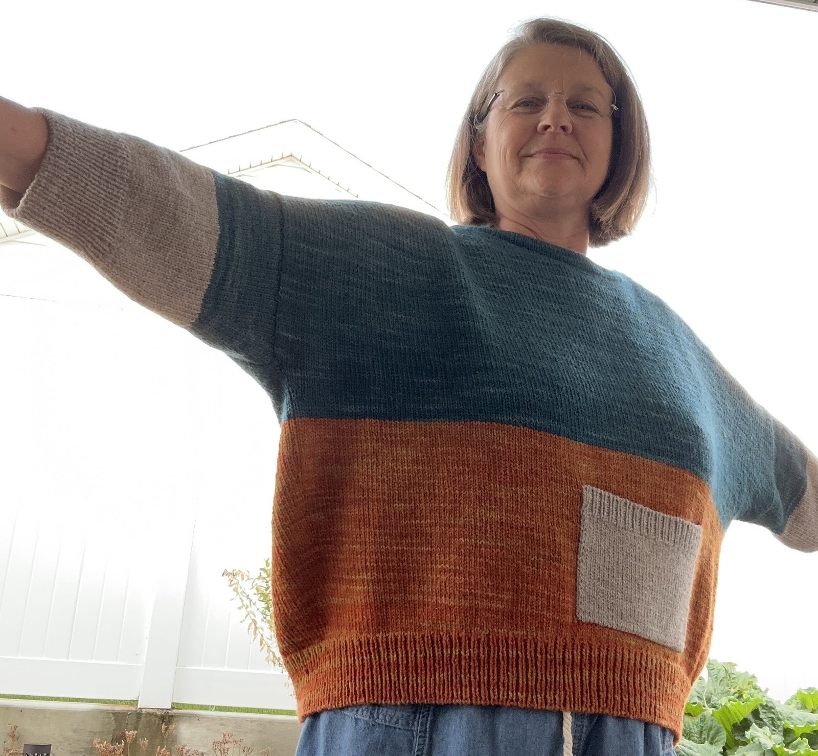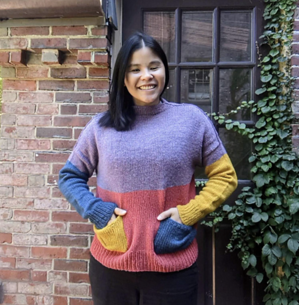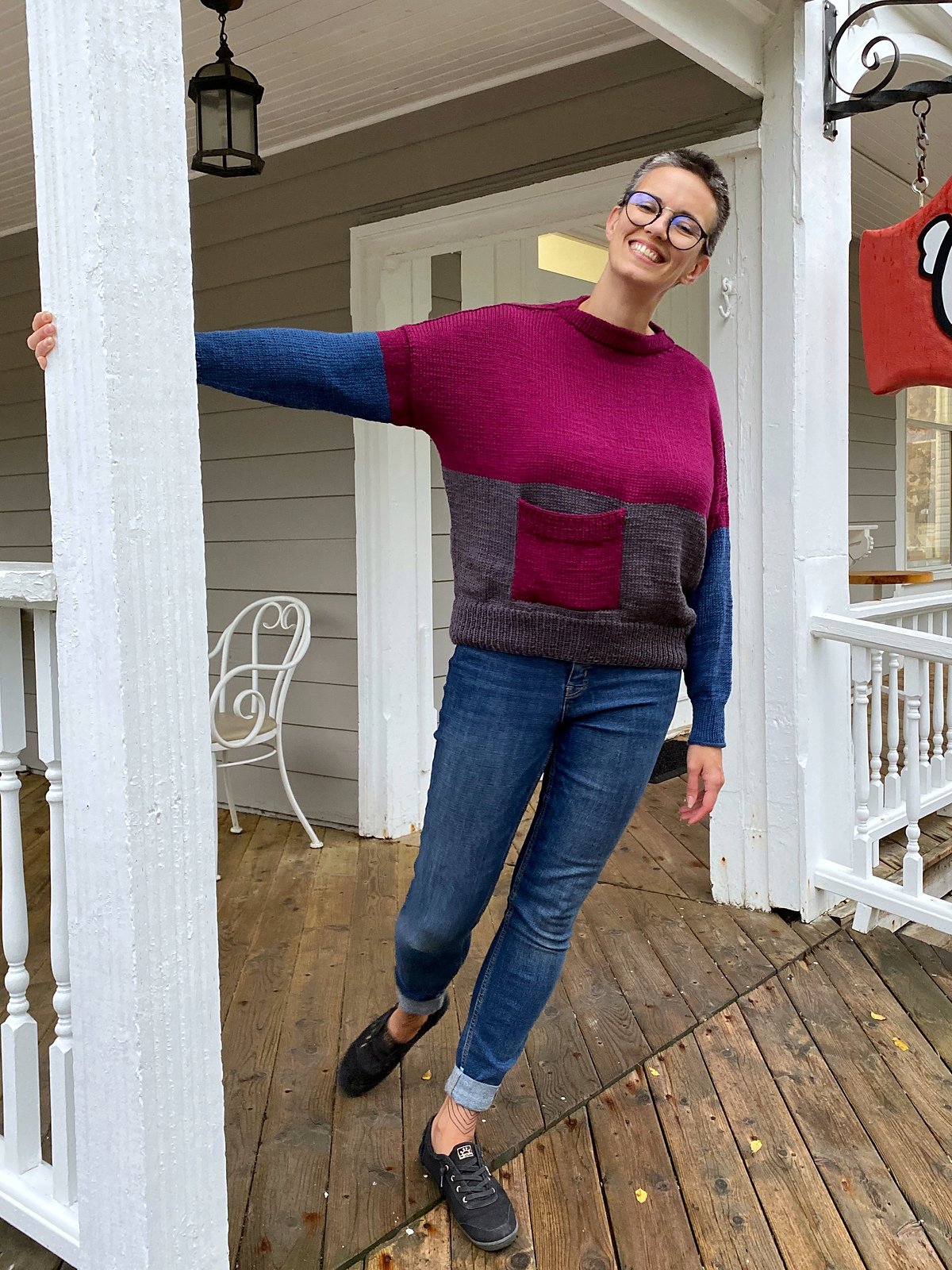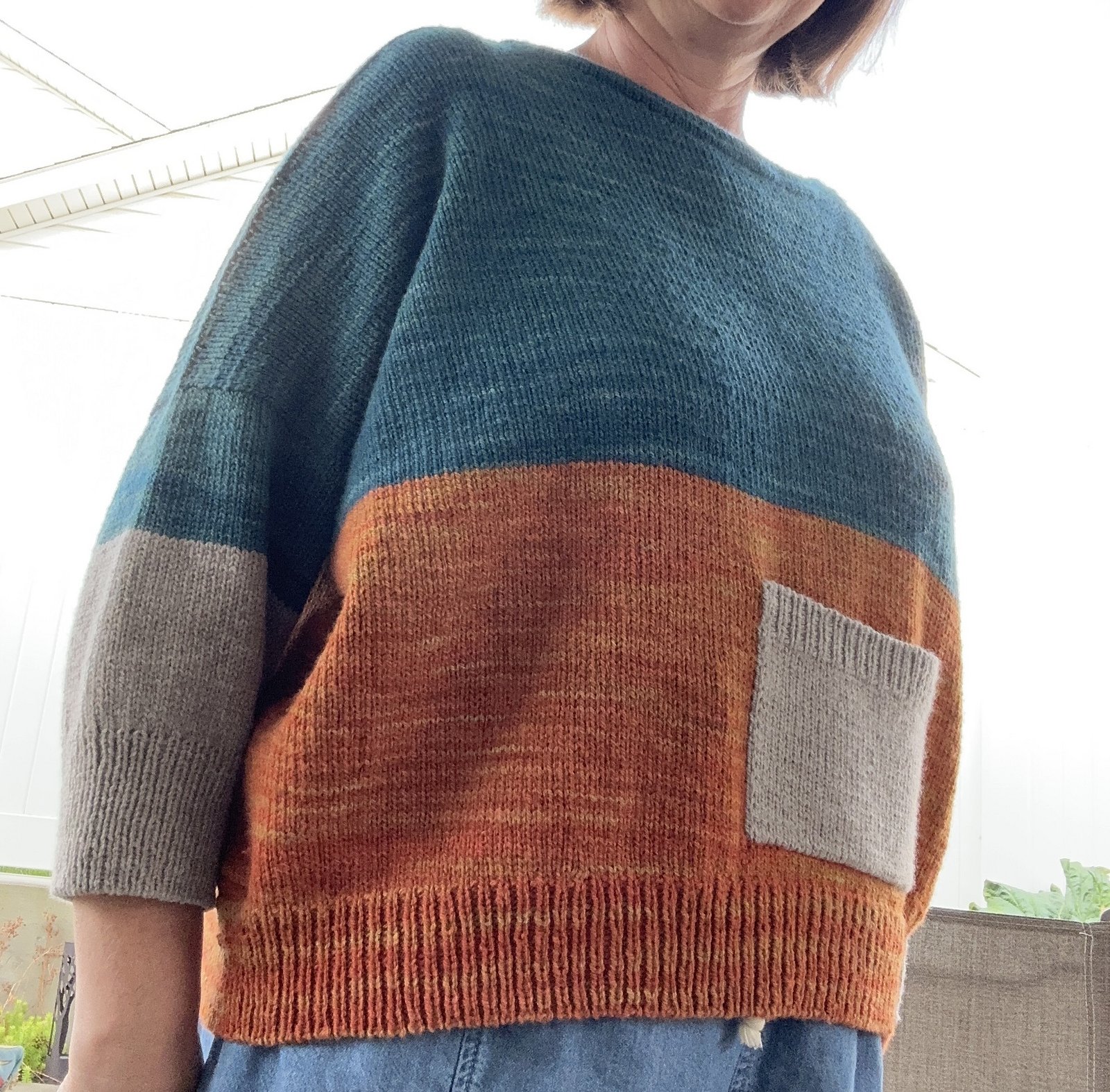 Chroma is a cozy color-blocked pullover with a relaxed fit, a statement piece equally suited for a day of TV on the couch or a picnic on a crisp autumn afternoon. Worked mostly in stockinette, this simple design with clean lines is the perfect blank canvas for playing with color. The pattern features bottom-up drop shoulder construction, a dip high-low hem, increases along the body for a subtle bell shape, a folded hem mock neck, 1 or 2 optional patch pockets, instructions and yarn requirements for 2-4 different colors, and 9 sizes.