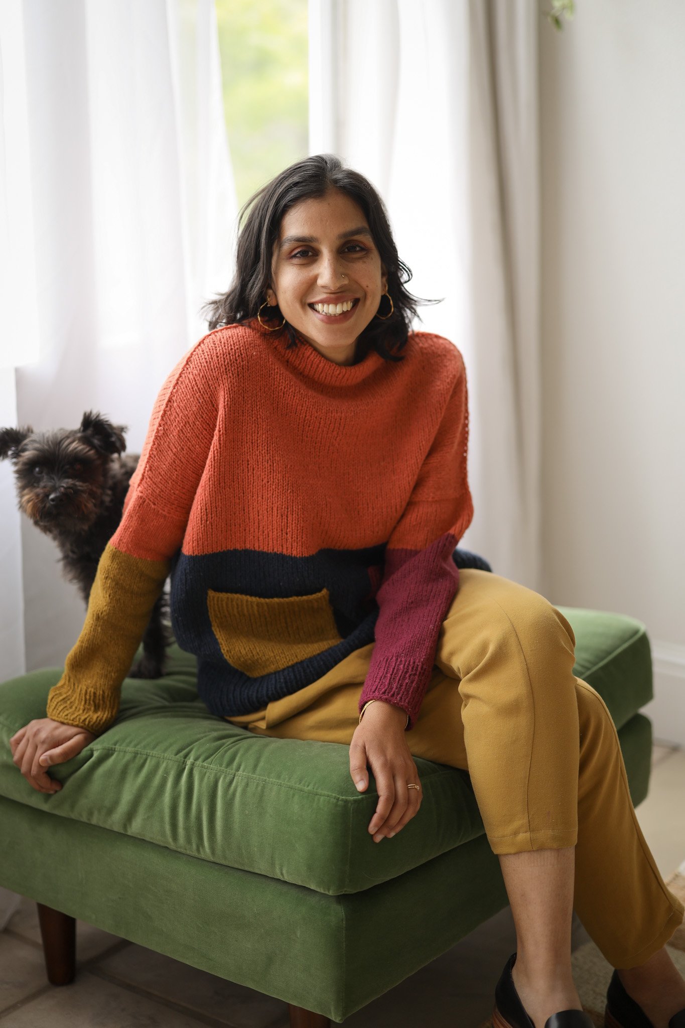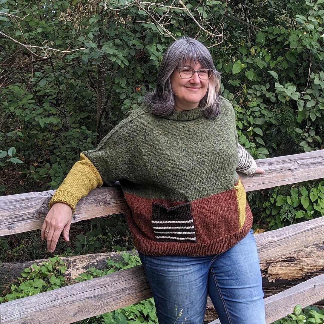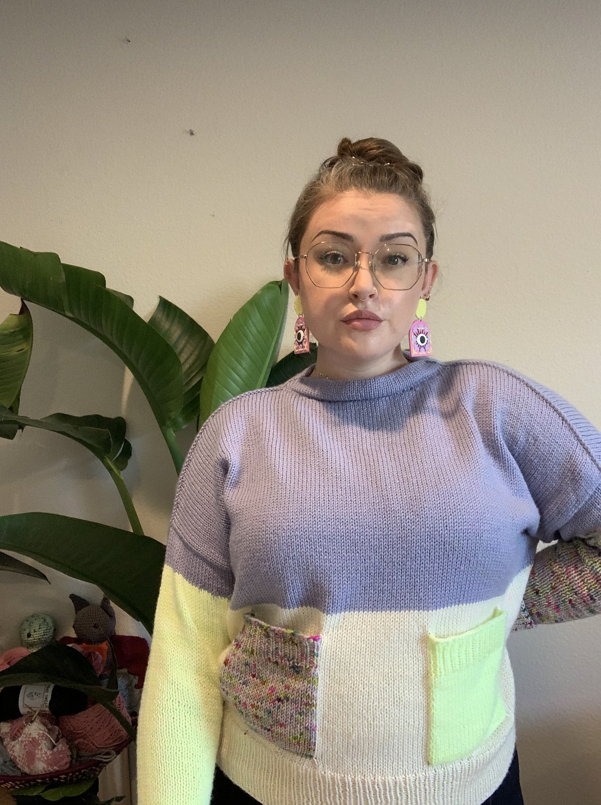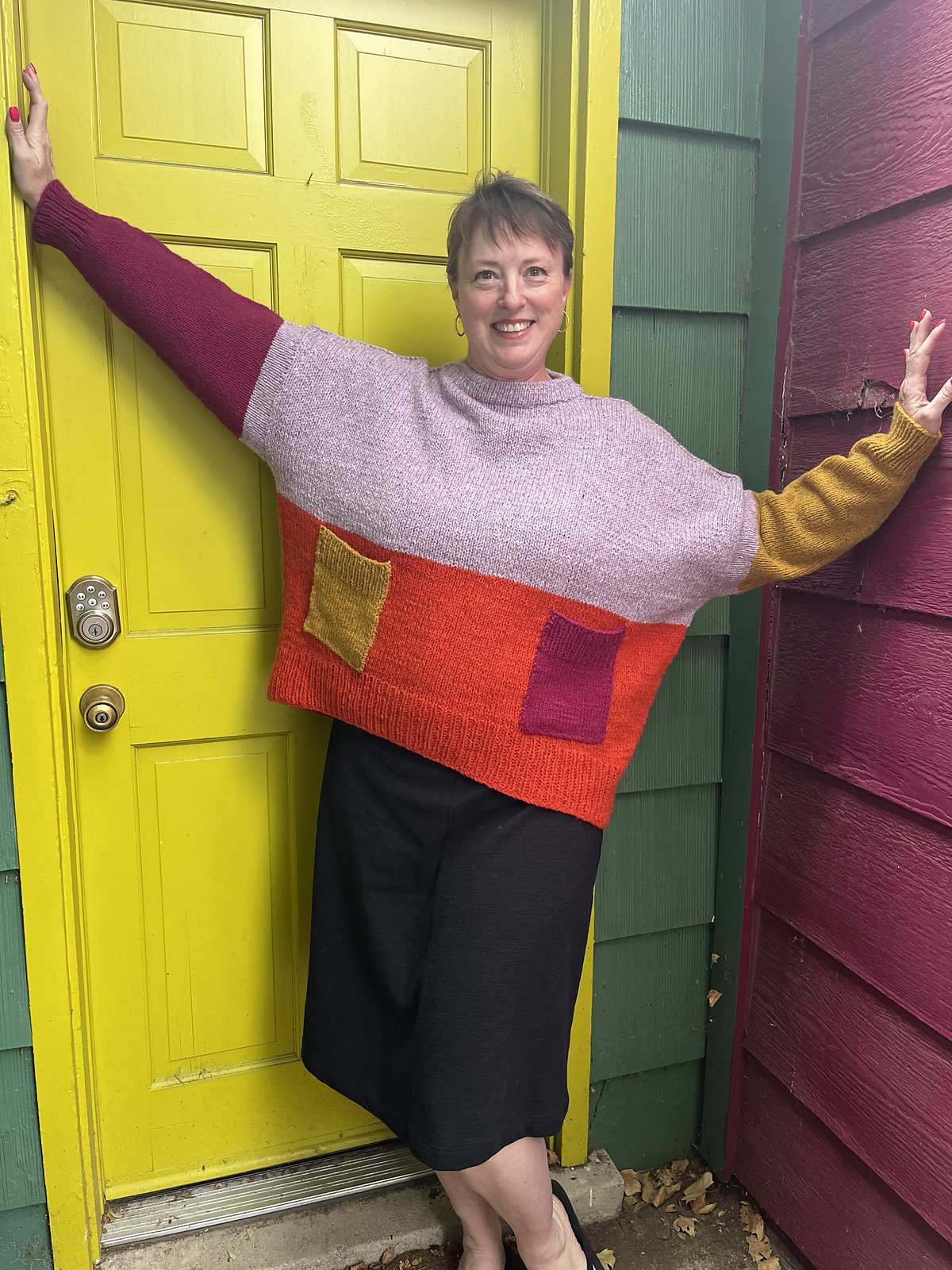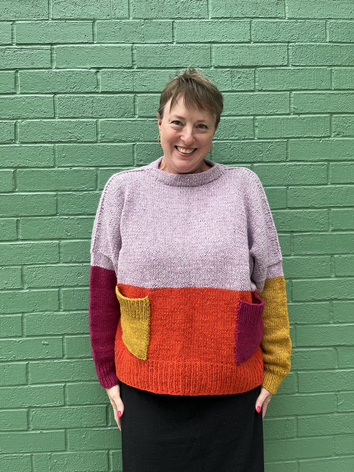 Chroma is a cozy color-blocked pullover with a relaxed fit, a statement piece equally suited for a day of TV on the couch or a picnic on a crisp autumn afternoon. Worked mostly in stockinette, this simple design with clean lines is the perfect blank canvas for playing with color. The pattern features bottom-up drop shoulder construction, a dip high-low hem, increases along the body for a subtle bell shape, a folded hem mock neck, 1 or 2 optional patch pockets, instructions and yarn requirements for 2-4 different colors, and 9 sizes.