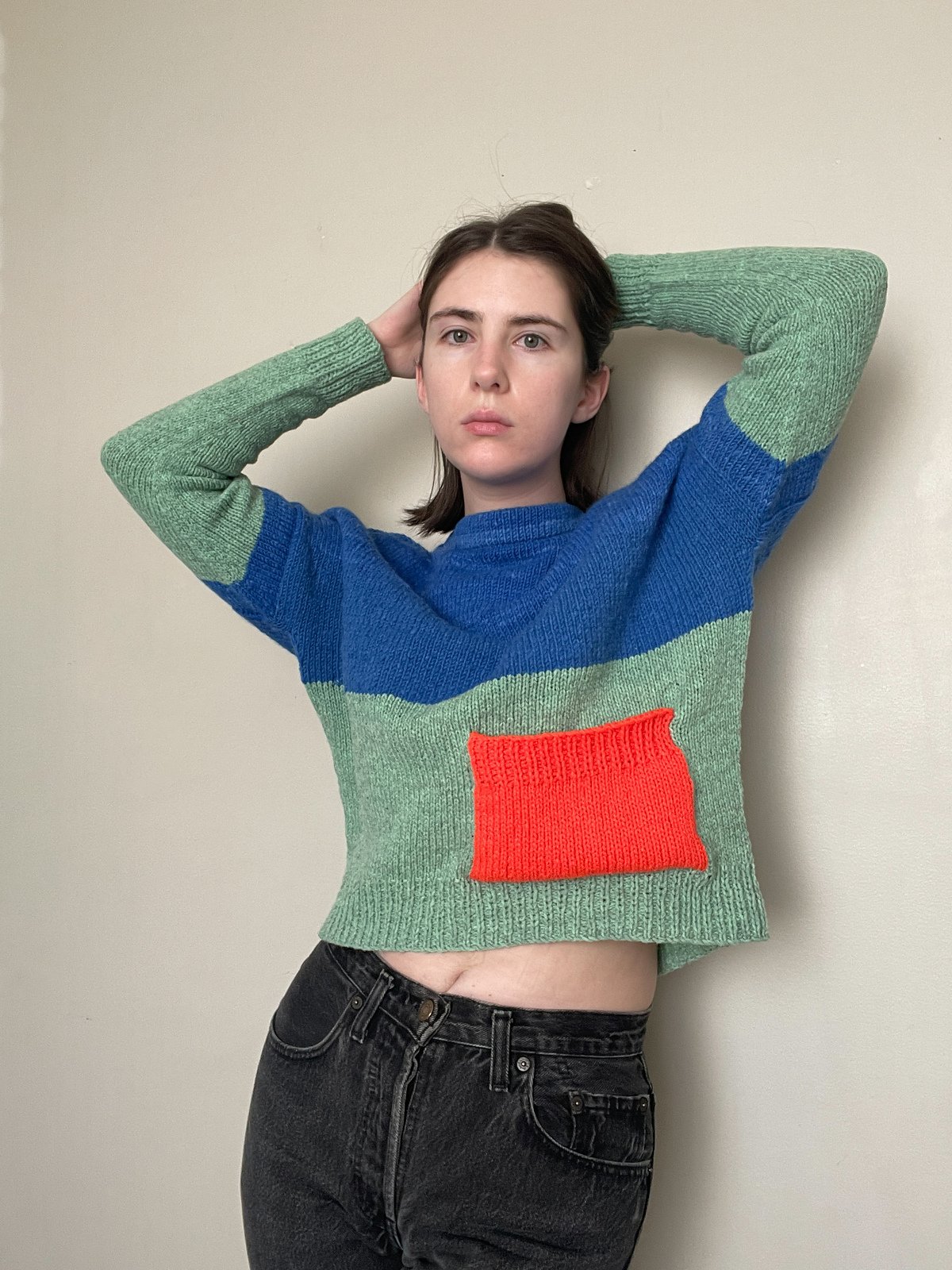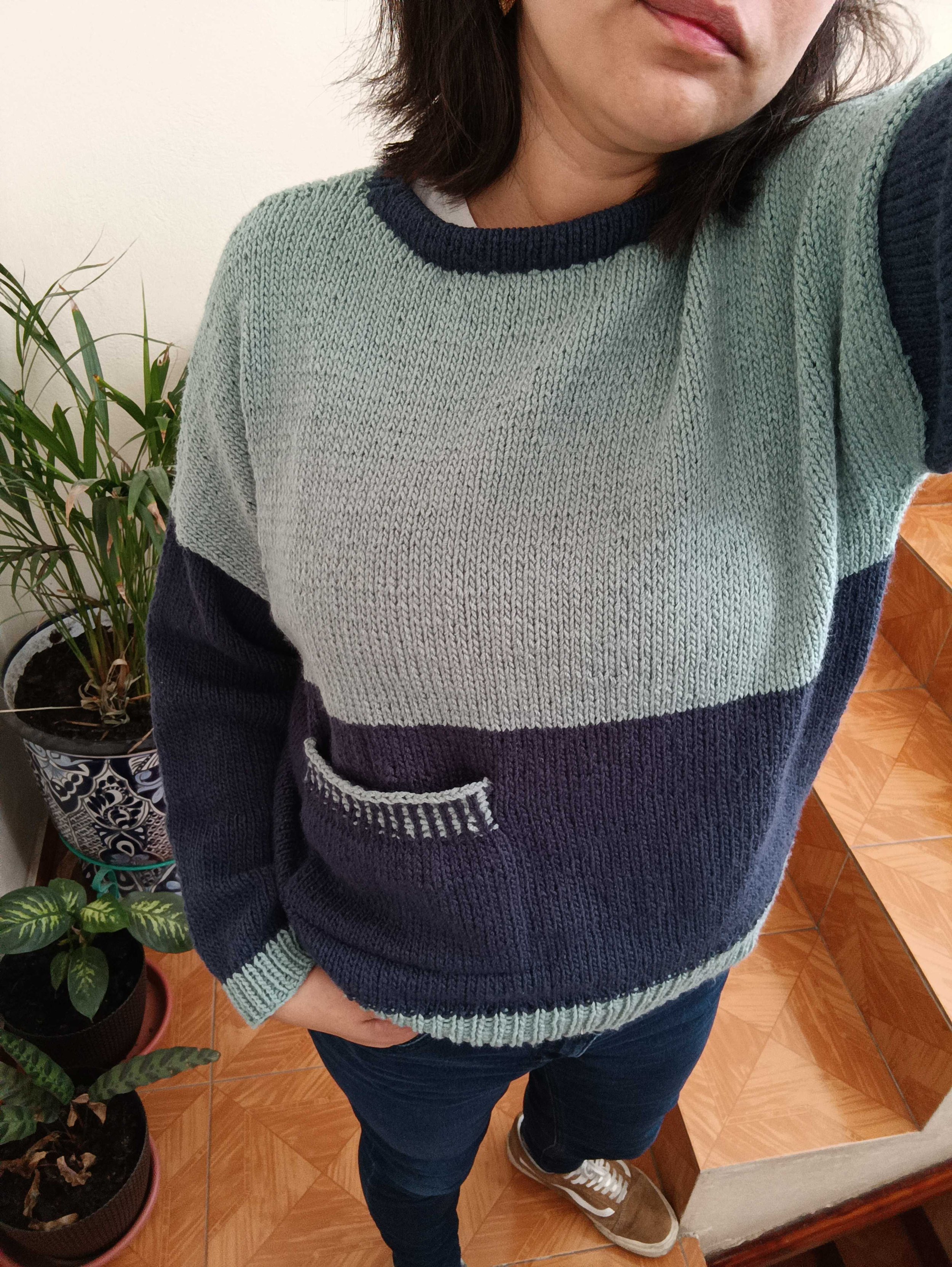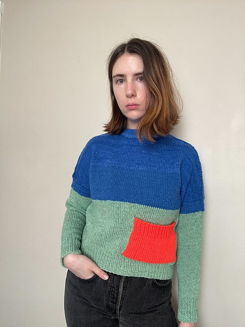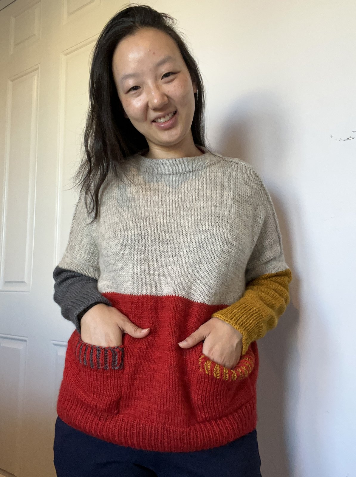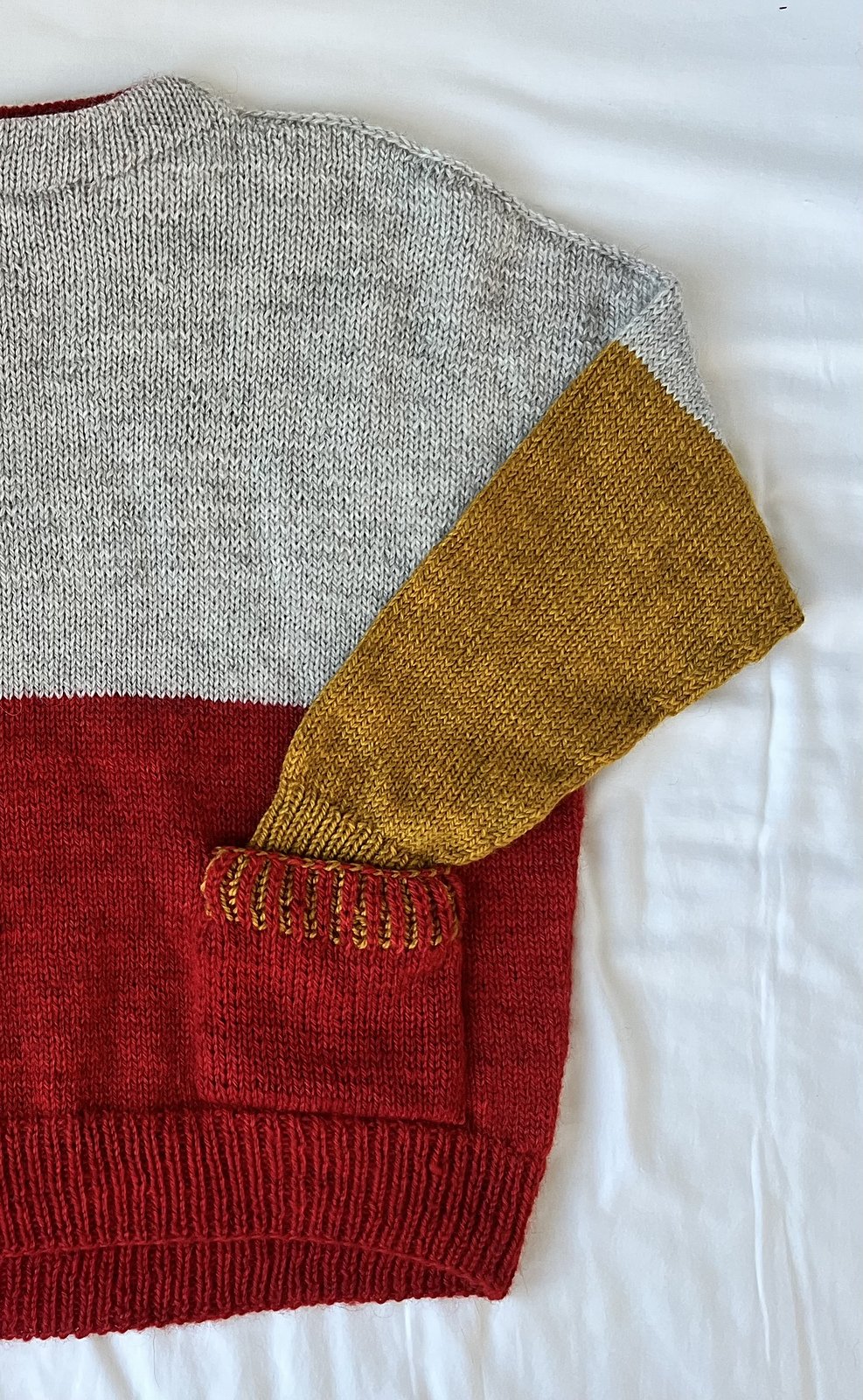 - Modifications: picked up 2 extra stitches for the sleeves, worked shorter ribbing on pockets