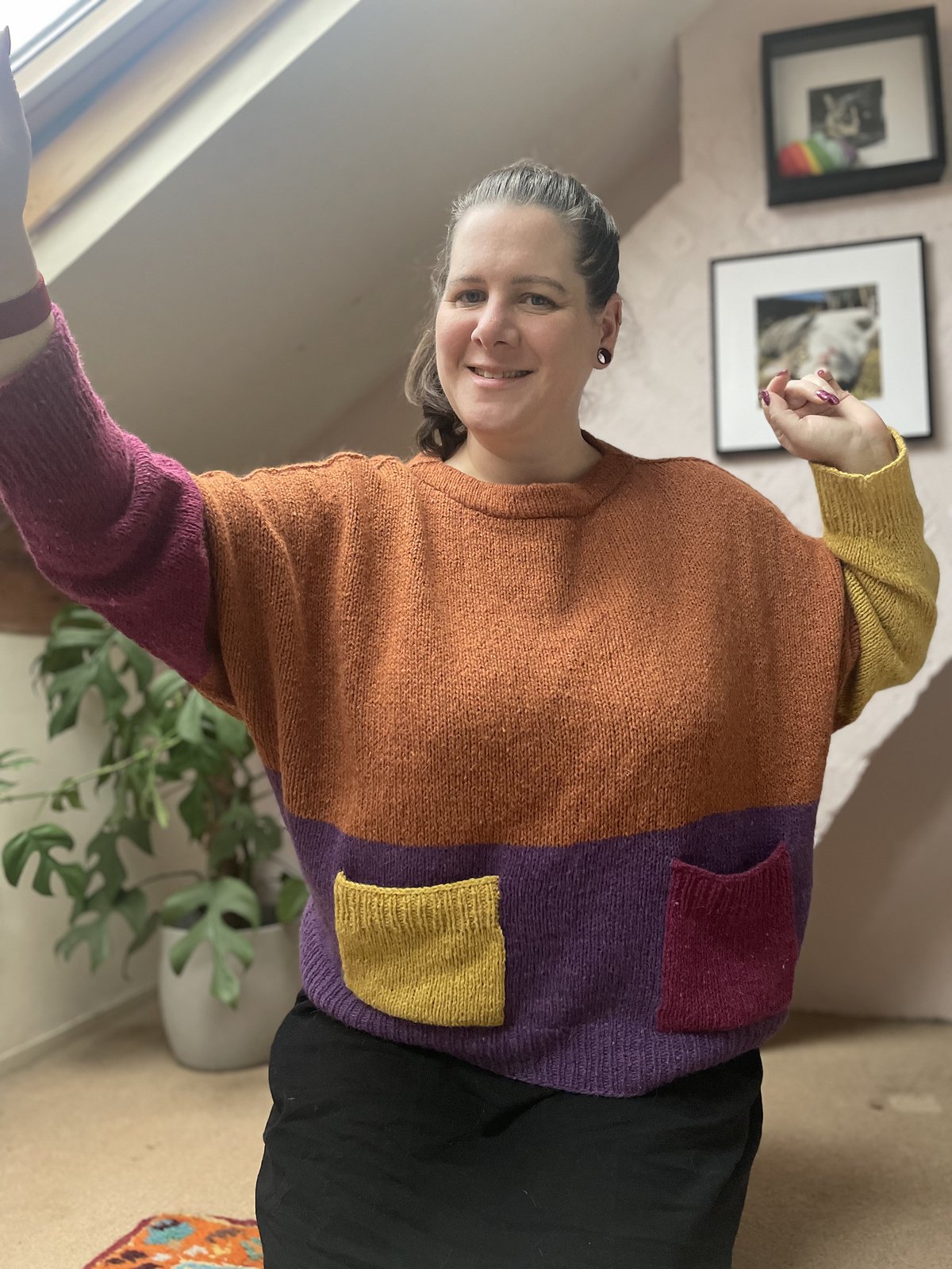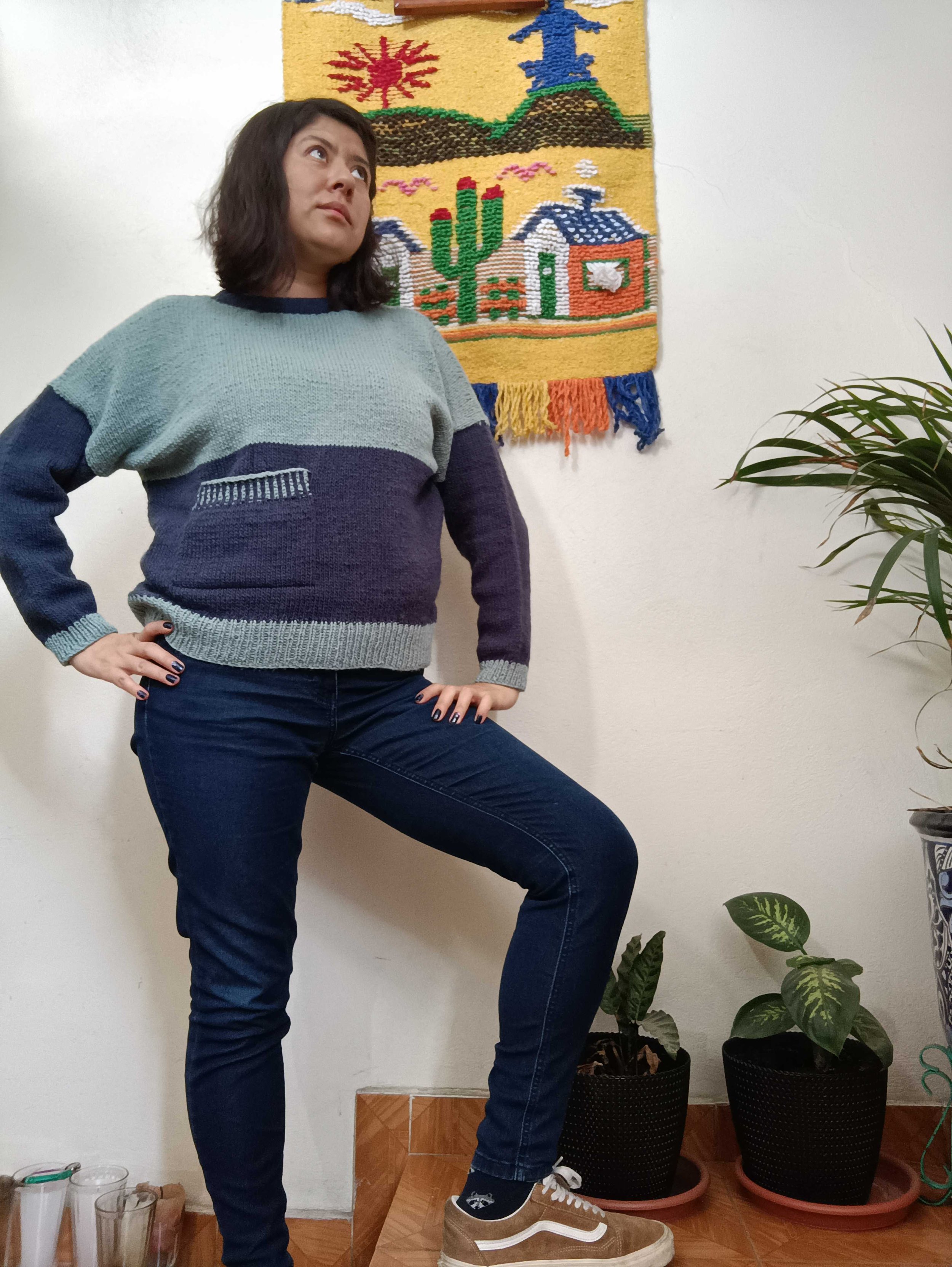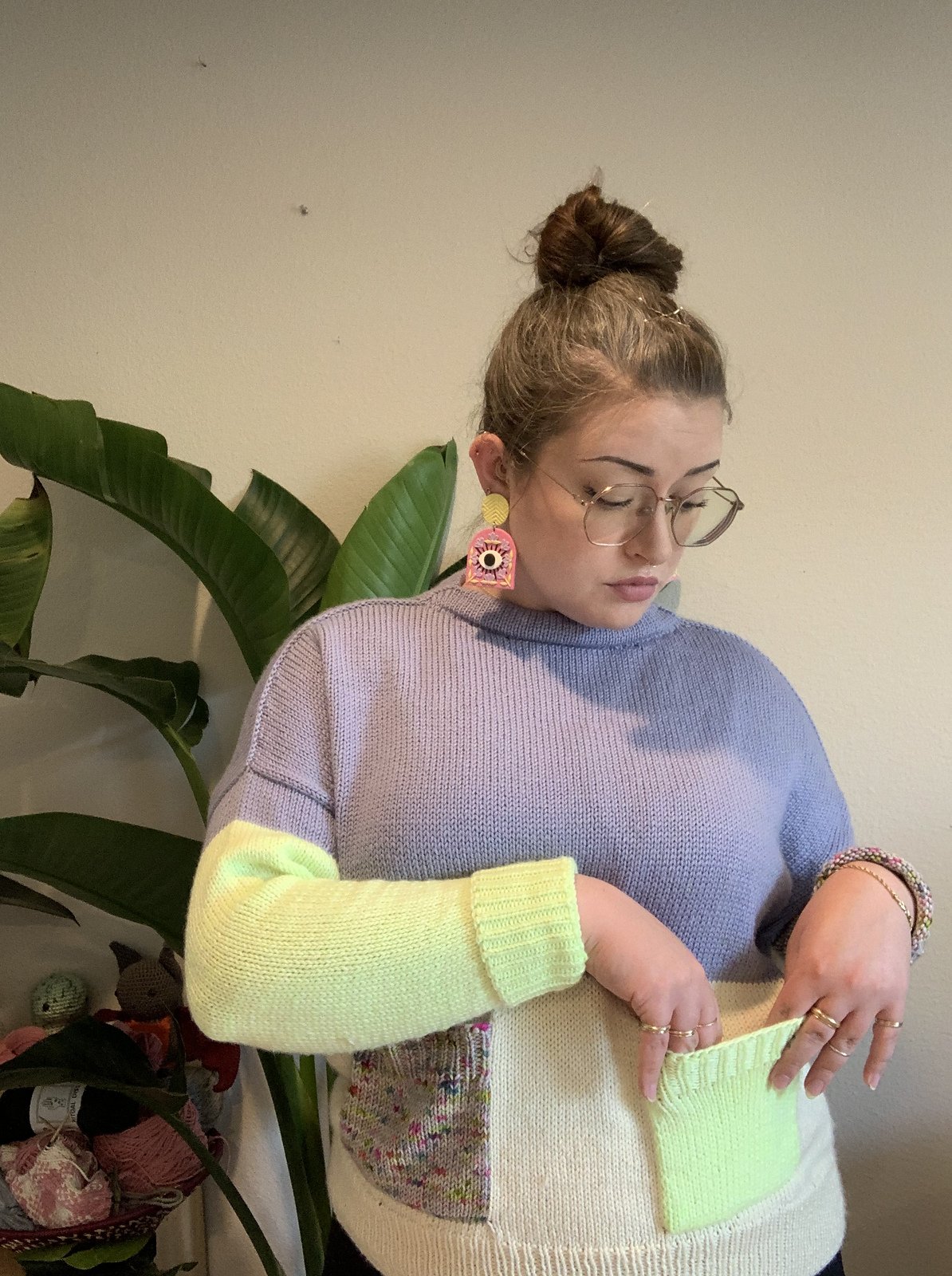 - Modifications: knitted ribbing and collar in contrast colors, brioche contrast ribbing pockets