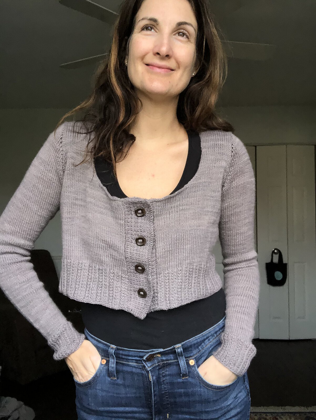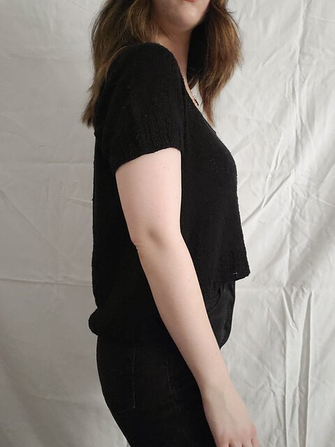 Modifications: worked bicep adjustment to remove circumference and sleeve adjustment to shorten sleeves