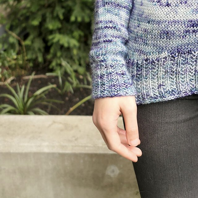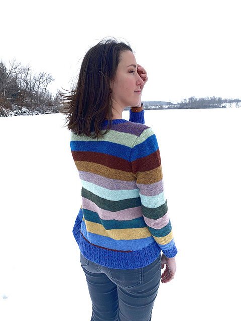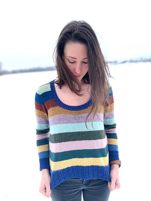 Modifications: worked sleeve and body/hip adjustment to shorten lengths, added stripes