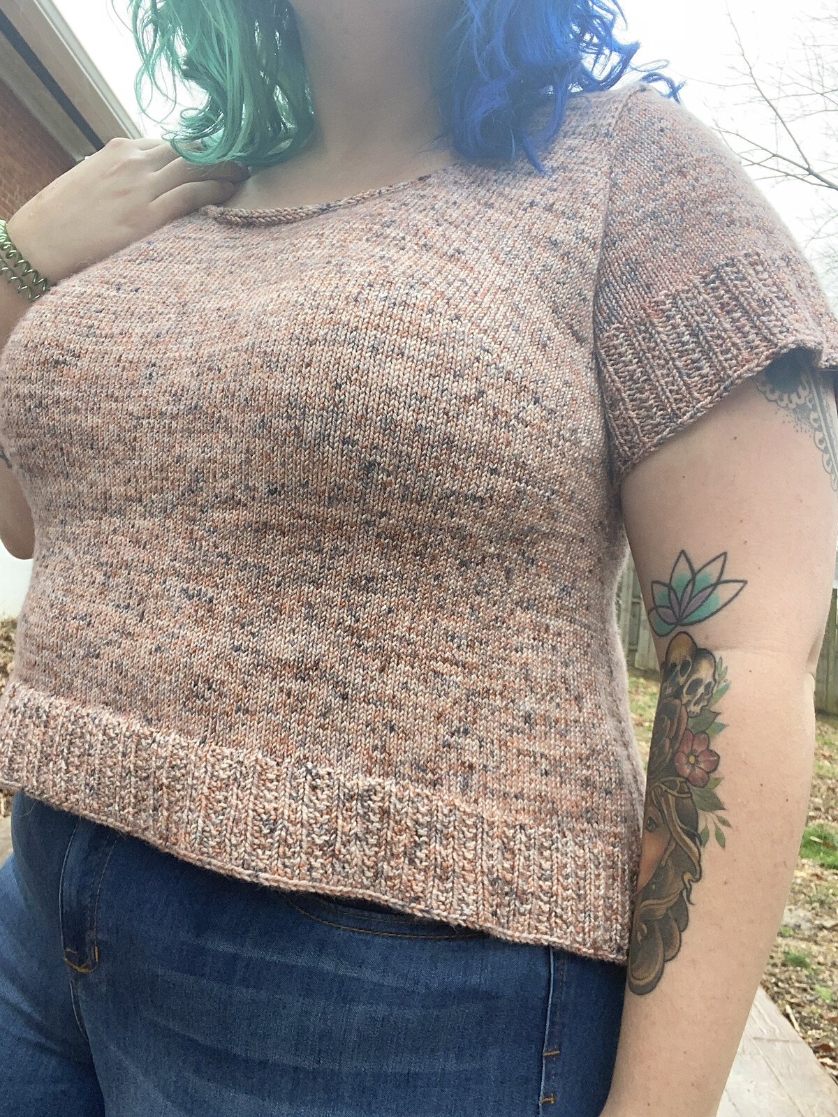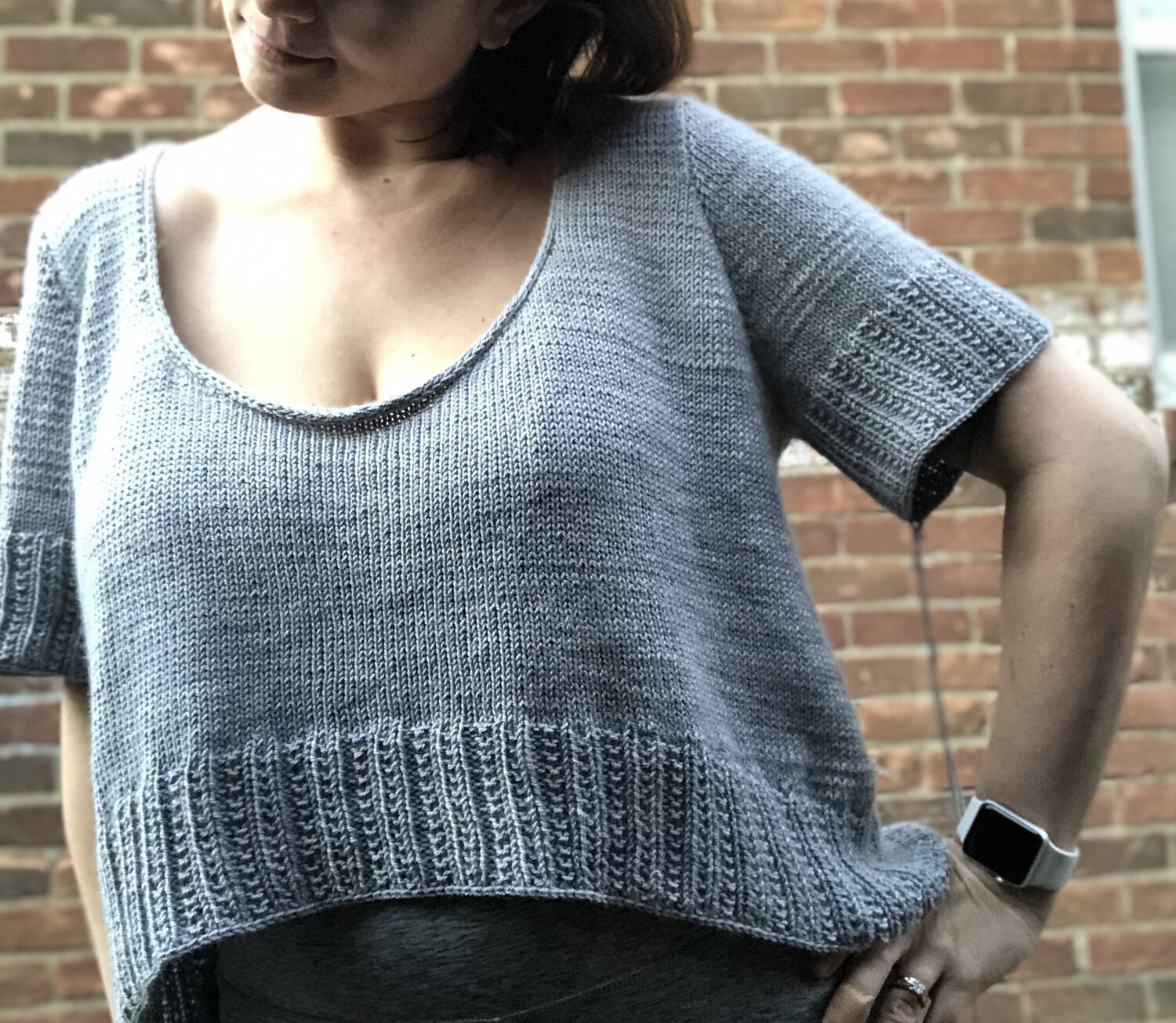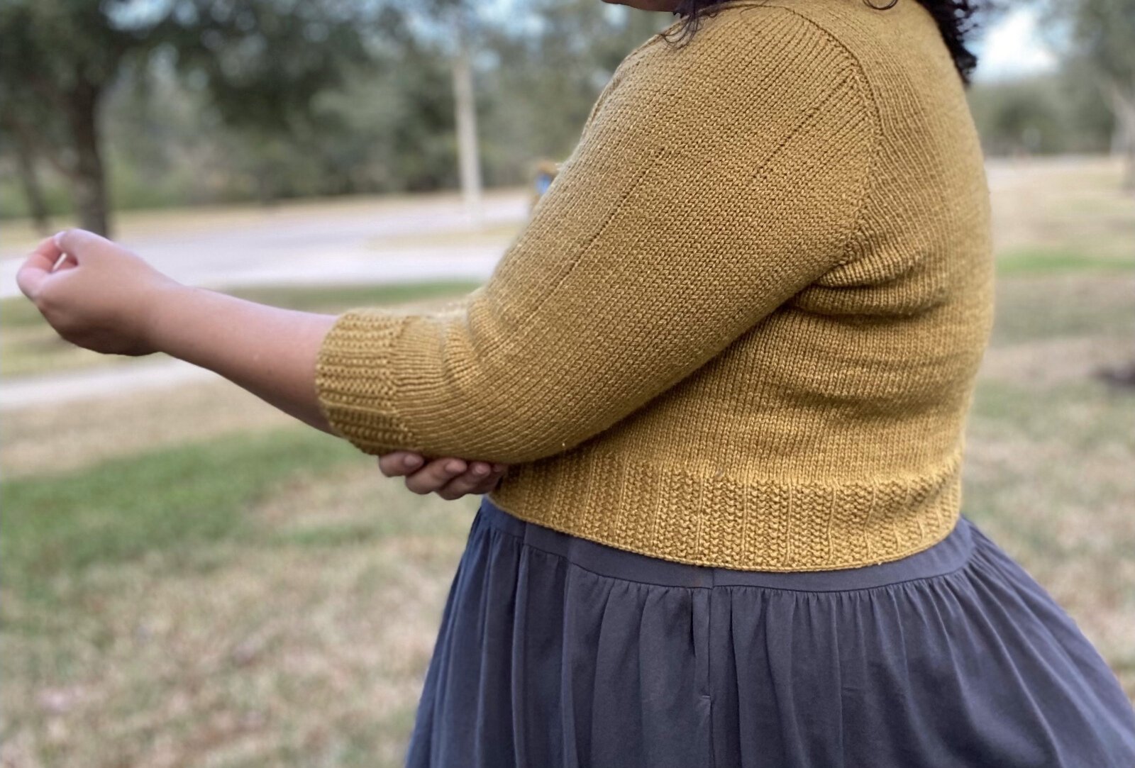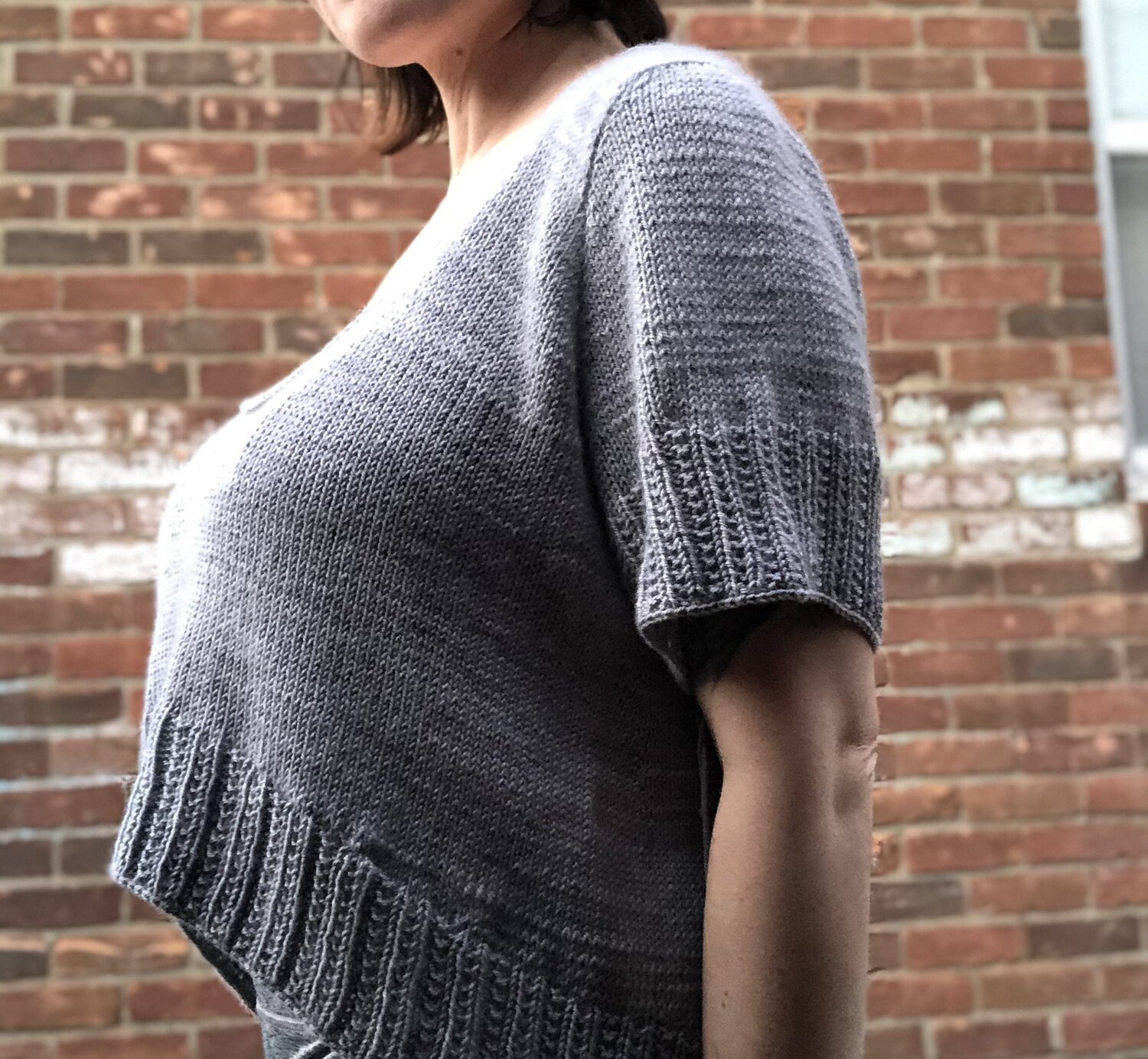 Modifications: worked bicep adjustment to add circumference and sleeve adjustment to shorten to 3/4 length