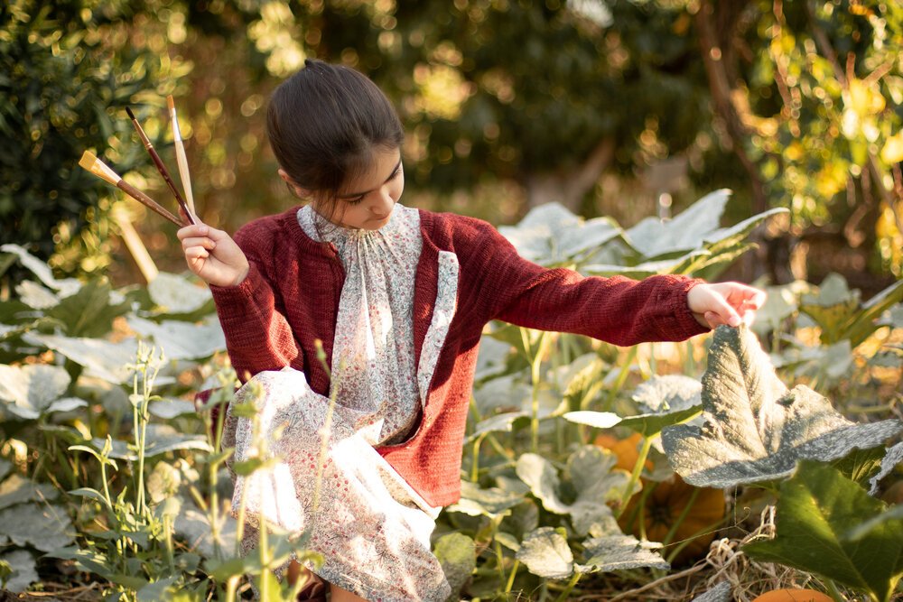 Unless you are now inspired to sew clothes to match your button band, as we were… I am wearing a self-drafted patchwork dress, Genevieve and Nora are wearing the Wiksten Smock, and Nora is wearing the Wiksten Harem Pants. Fabrics are from EWE Fibers.