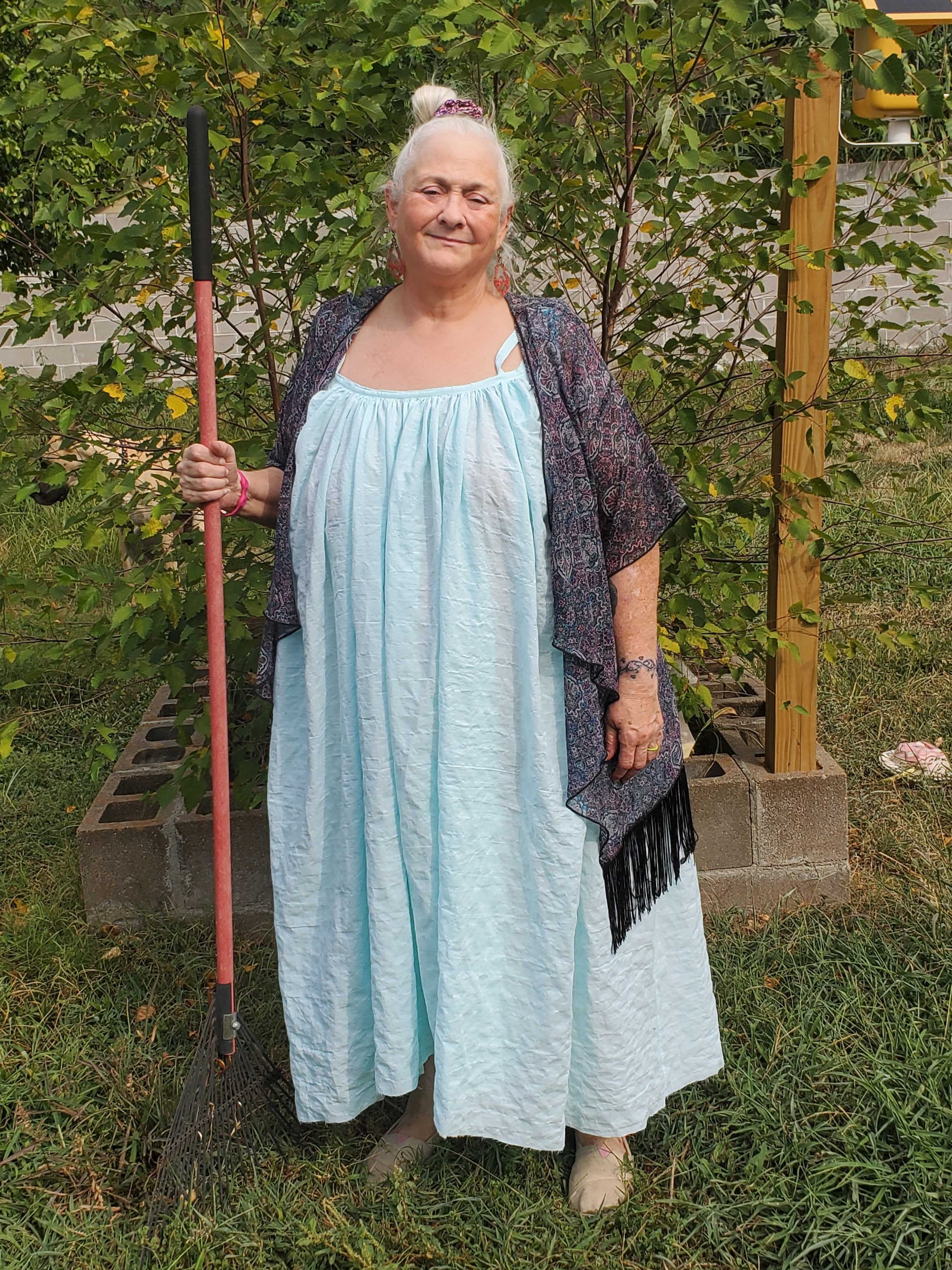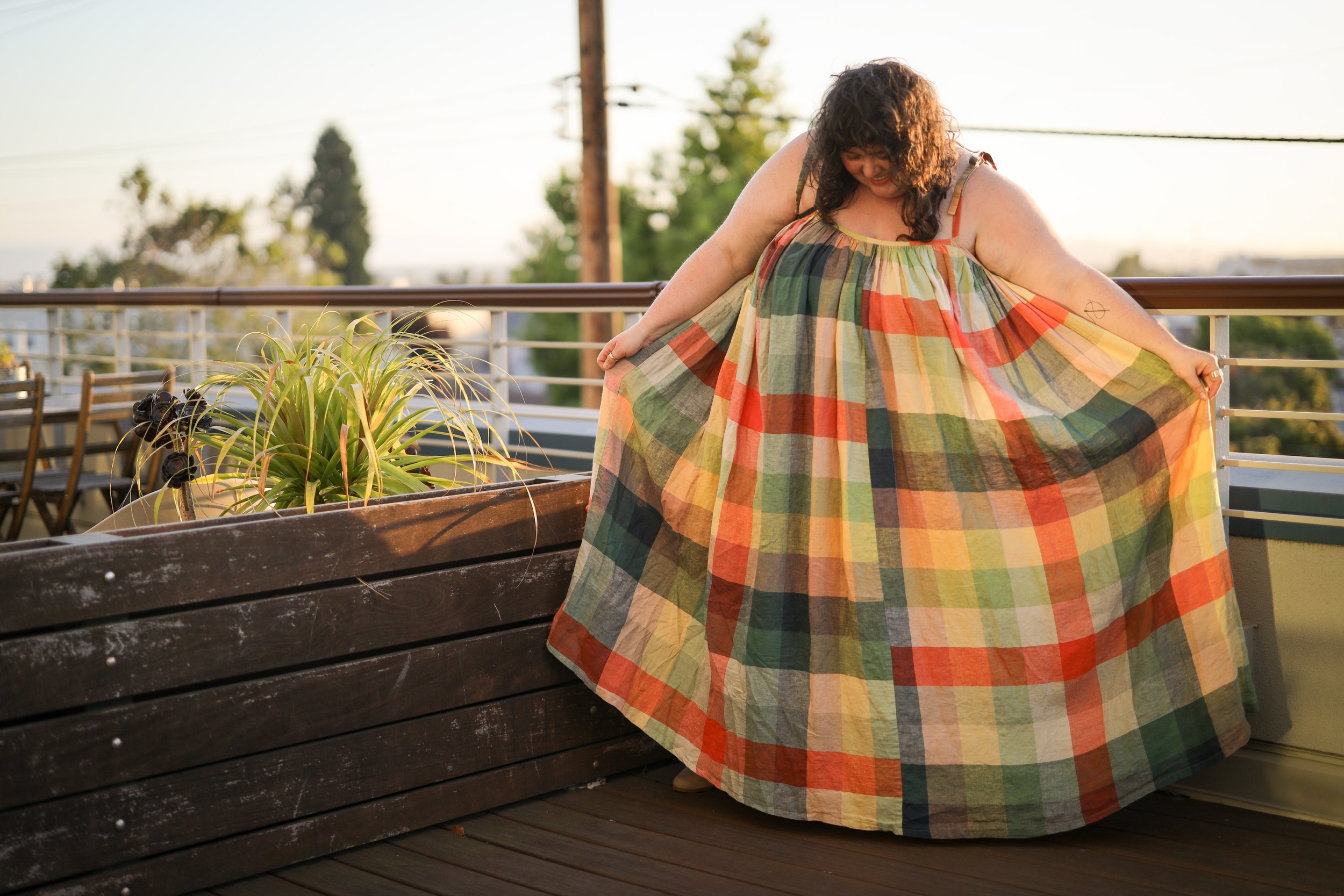 Gatherer is a sleeveless dress and top pattern designed for drape and drama in lightweight fabrics. This simple yet full silhouette is easy to wear on its own, layered over a bodysuit, or styled under a cozy pullover. Choose from a slightly cropped top, a midi dress with a high-low dip hem, or a floor-length maxi dress, and finish it with closed or tie straps. The pattern includes 12 sizes, fully illustrated instructions, guidance for common adjustments, and details for figuring yardage for a color-blocked version. Gatherer is suitable for beginning-intermediate sewists.