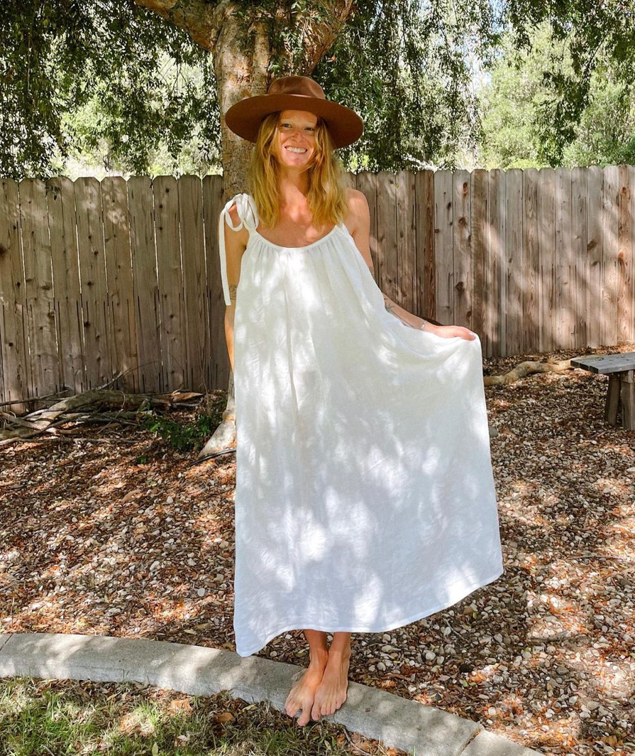 - Fabric: 100% linen for the maxi dress, cotton single gauze for the short dress