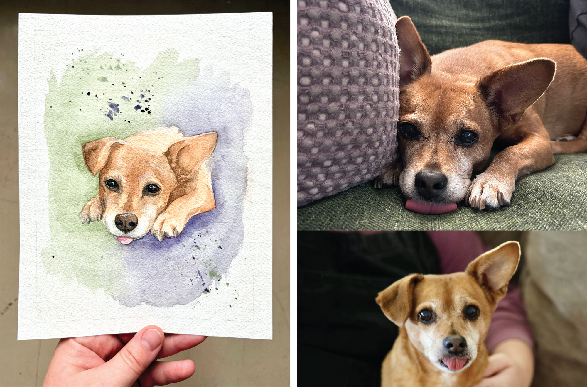 The number one most important thing is the quality of the photo I work from. It might be helpful to think of this photo as the rough draft or blueprint for your painting. Remember, I have not met your pet — all I know about them is what you show/tell me. I allow folks to submit multiple photos, but the truth is that ONE of the photos you submit is going to become THE photo that I copy most precisely — any additional photos will just be references for adjustments based on your notes or my intuition as I'm working (more on that later).
