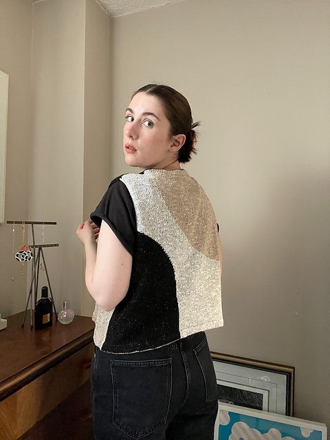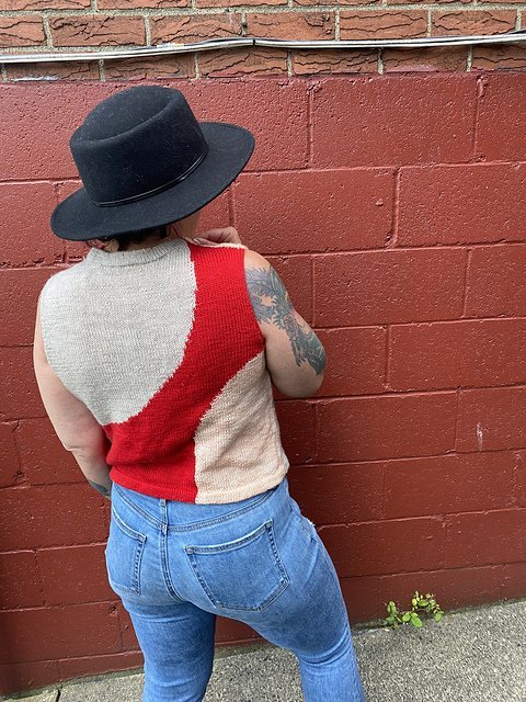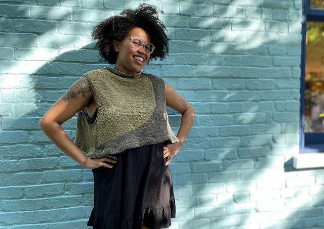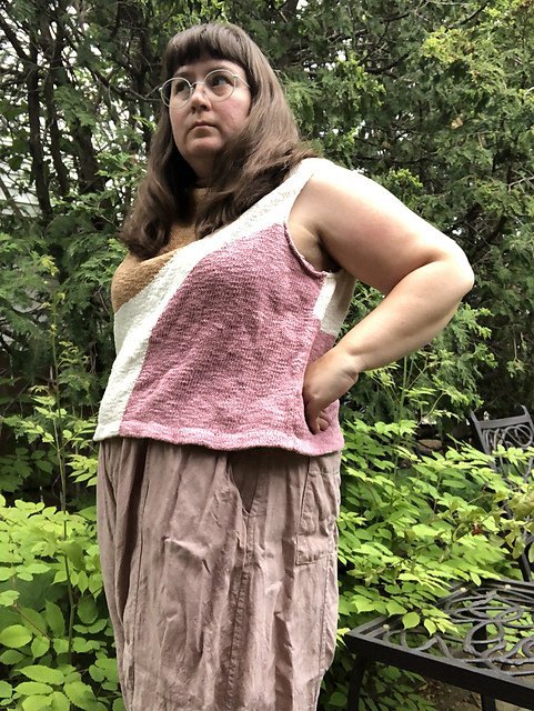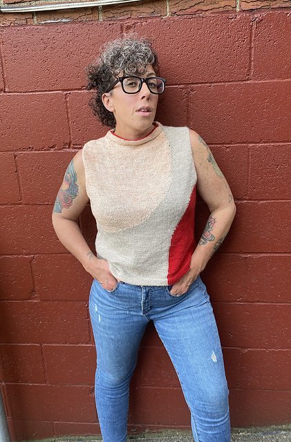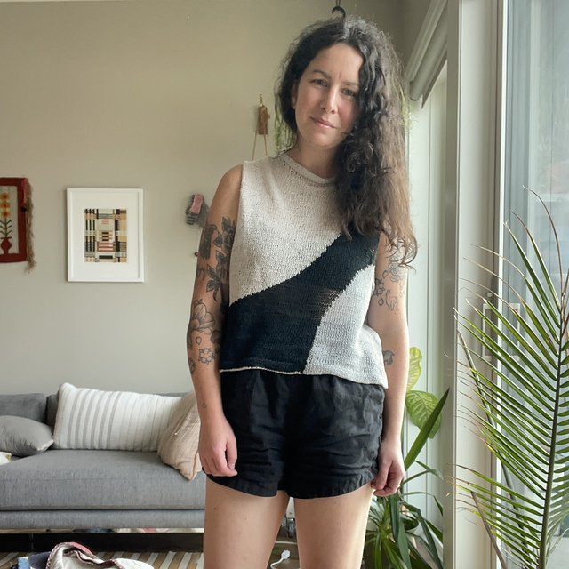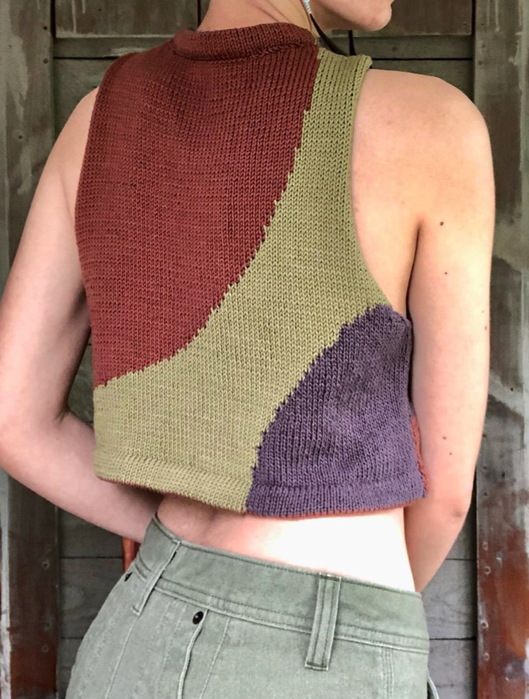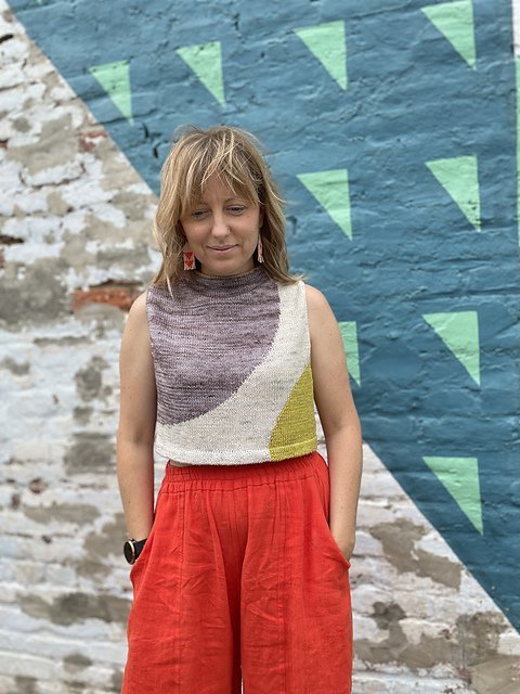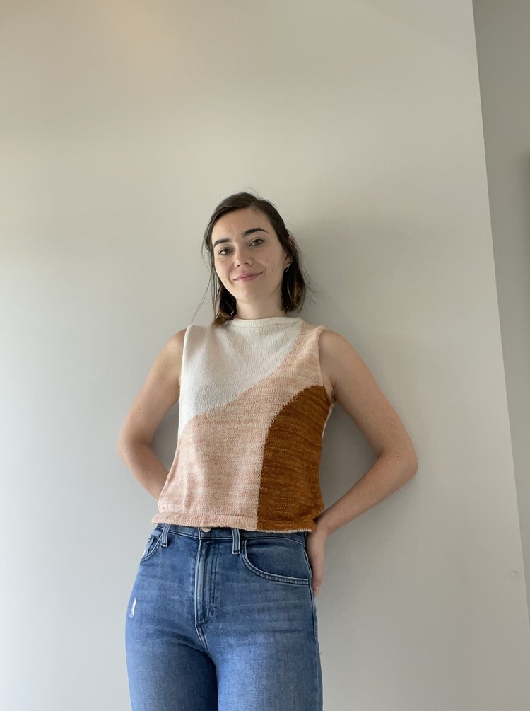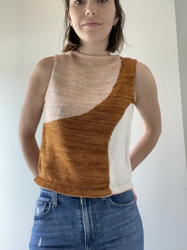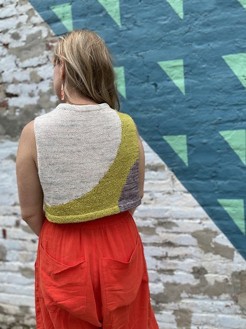 MOONCRUSH is a cool color-blocked summer day dream of a tank, designed for play in both the knitting and the wearing. With deep armholes and wide shoulders, Mooncrush features a boxy, sporty silhouette that is equally well-matched with your favorite cut-offs or layered over a linen sundress...