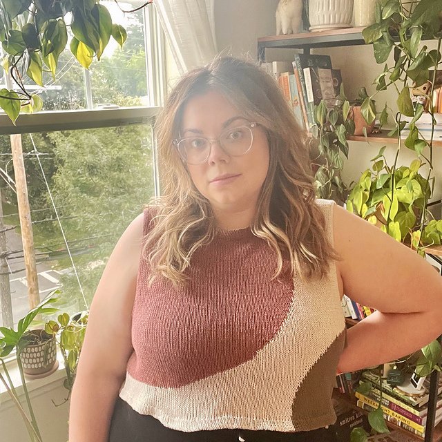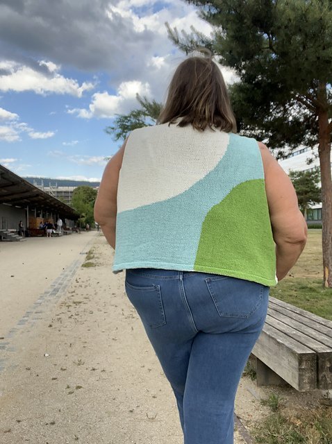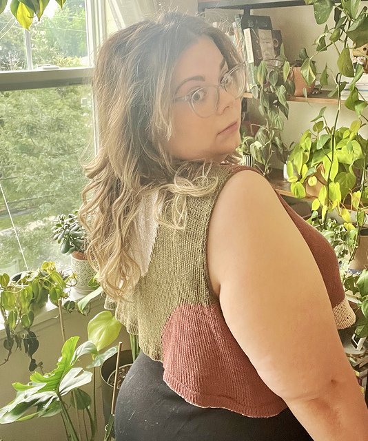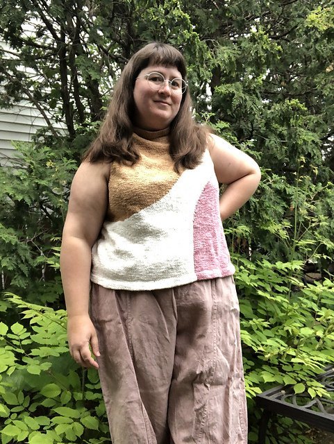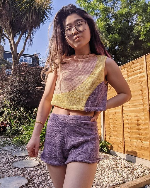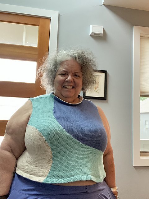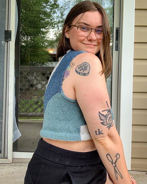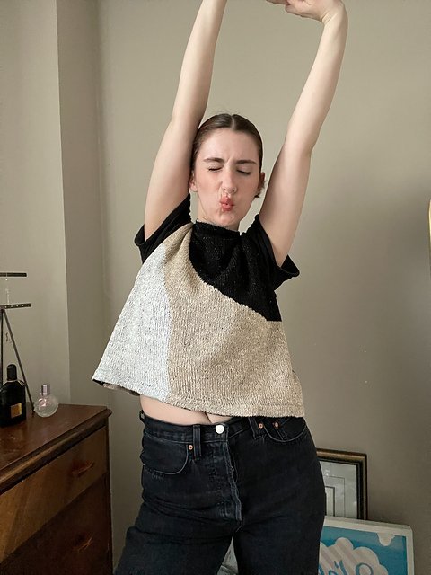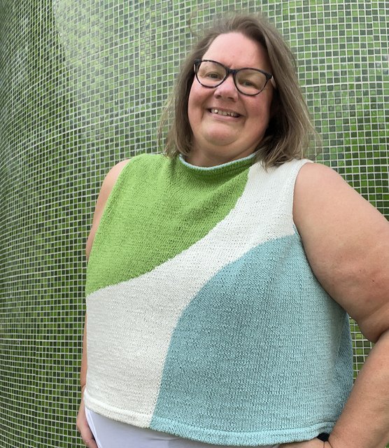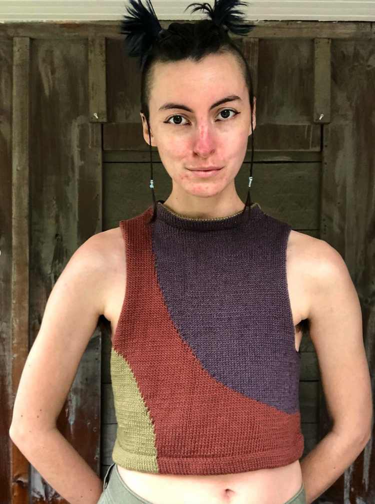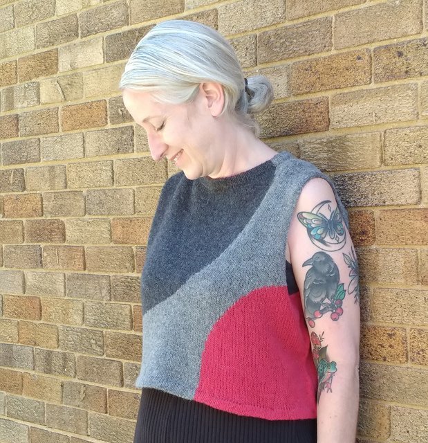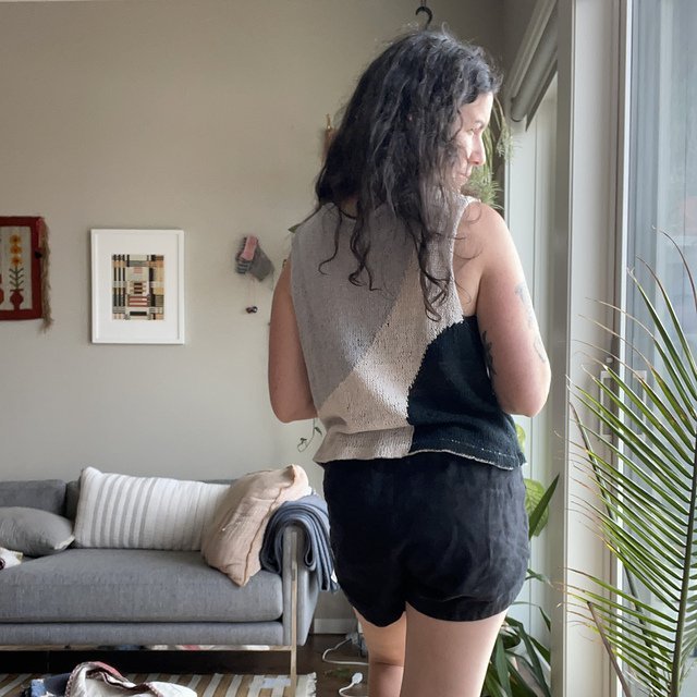 MOONCRUSH is a cool color-blocked summer day dream of a tank, designed for play in both the knitting and the wearing. With deep armholes and wide shoulders, Mooncrush features a boxy, sporty silhouette that is equally well-matched with your favorite cut-offs or layered over a linen sundress...