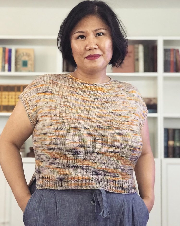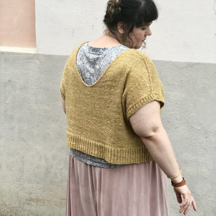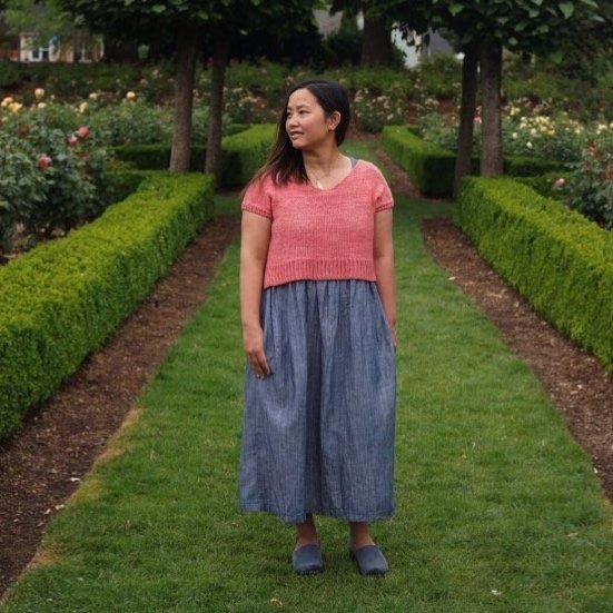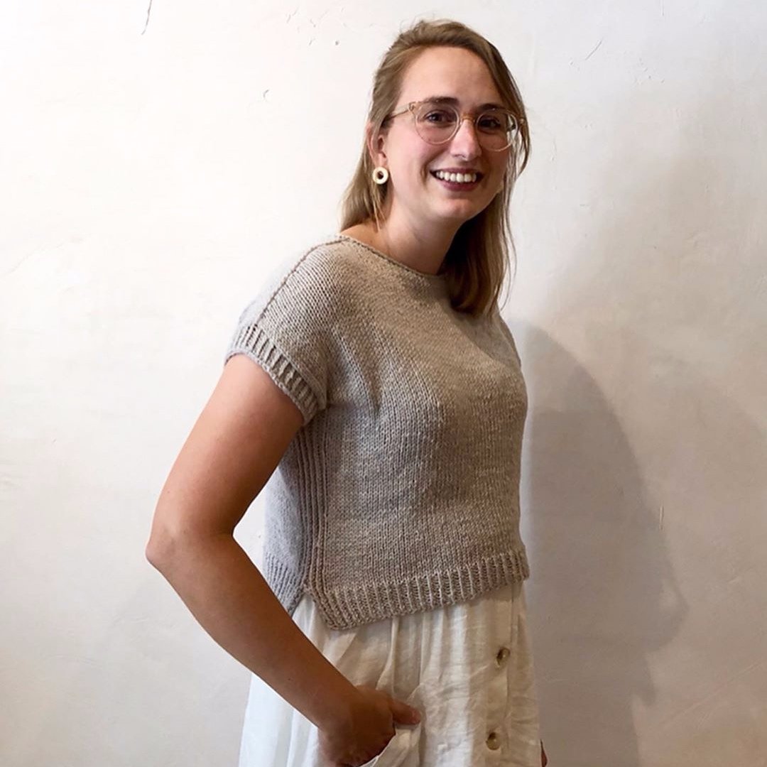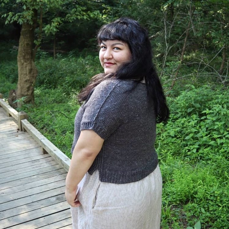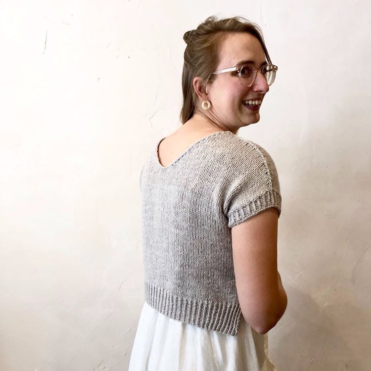 Rift cracks open all your assumptions about what a “basic tee” pattern should be. This lightweight, bottom-up knit includes instructions for two necklines, optional bust darts, and a custom fit bicep. The design features a slightly cropped body and a split high-low hem in twisted rib, giving it enough detailing to be interesting while maintaining a timeless simplicity.