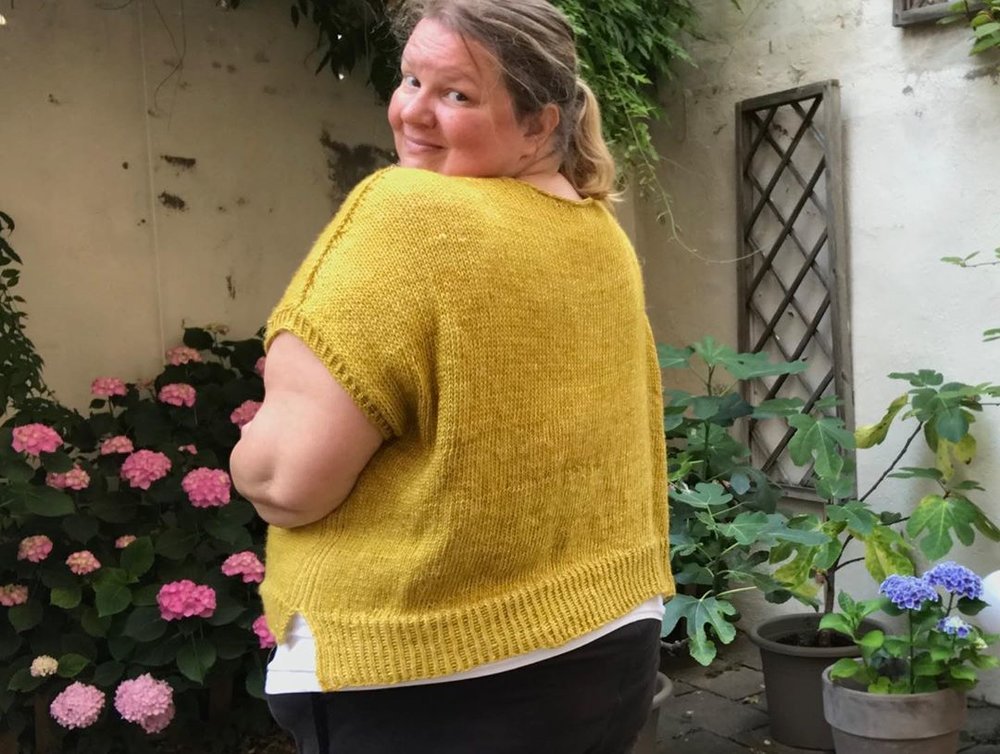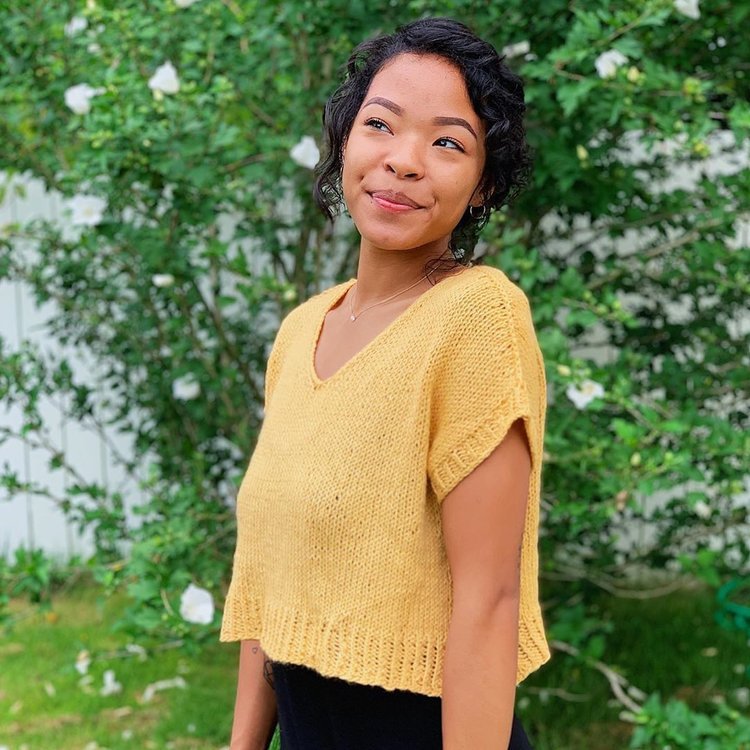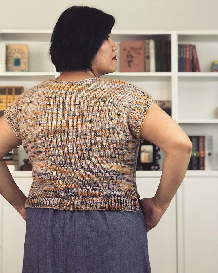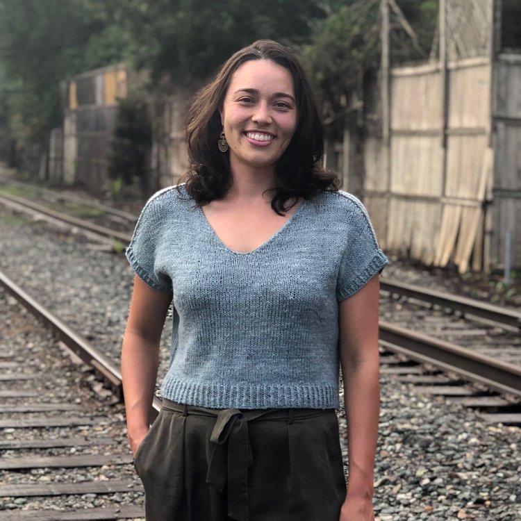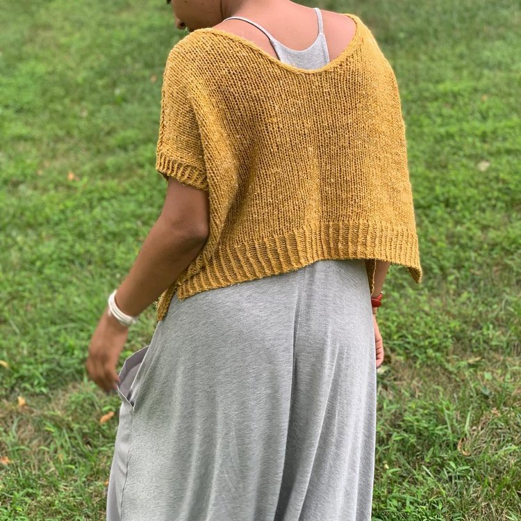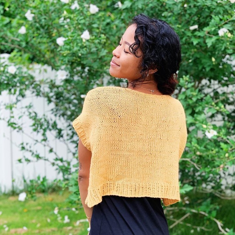 Rift cracks open all your assumptions about what a “basic tee” pattern should be. This lightweight, bottom-up knit includes instructions for two necklines, optional bust darts, and a custom fit bicep. The design features a slightly cropped body and a split high-low hem in twisted rib, giving it enough detailing to be interesting while maintaining a timeless simplicity.