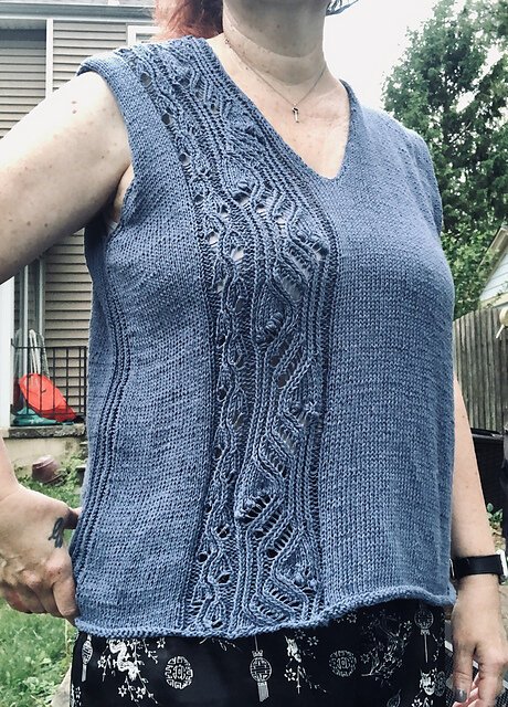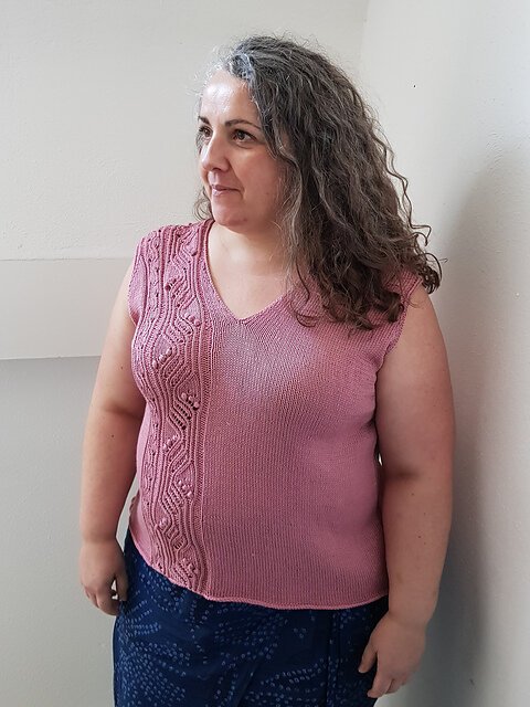 SOL is a tank for the summer solstice, designed to celebrate the healing power of creativity and the warmth of the sun on your body. With simple bottom-up construction, this tank features an original asymmetric lace panel inspired by chestnut blossoms. The pattern includes 9 sizes, instructions for cropped or full-length, details for modifying the width of the straps, and both written and charted instructions for the lace panels.