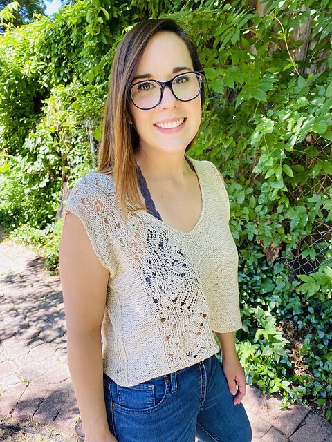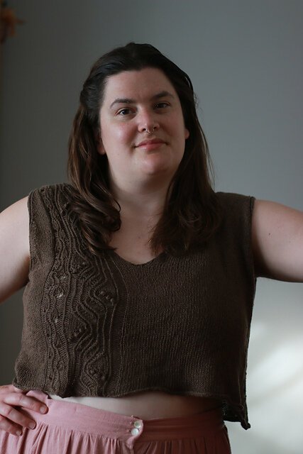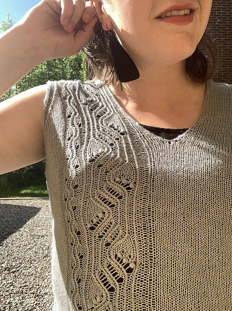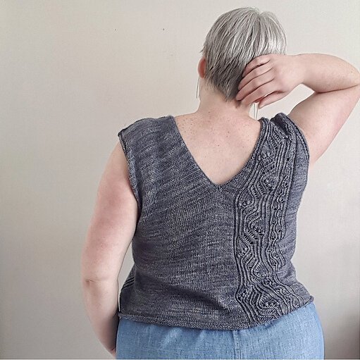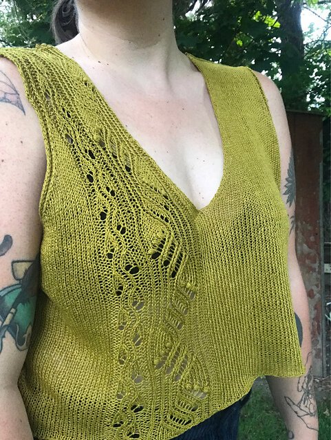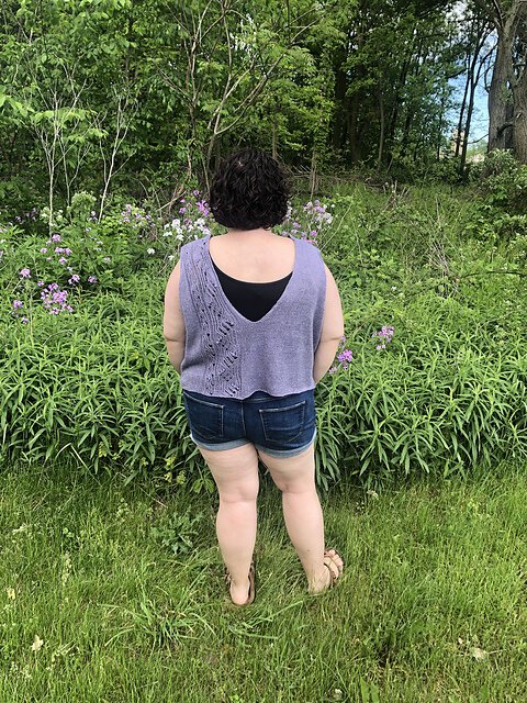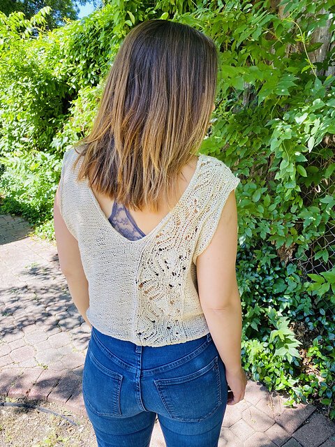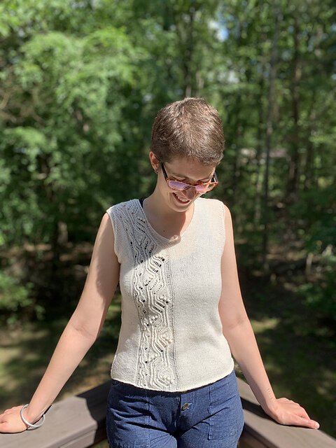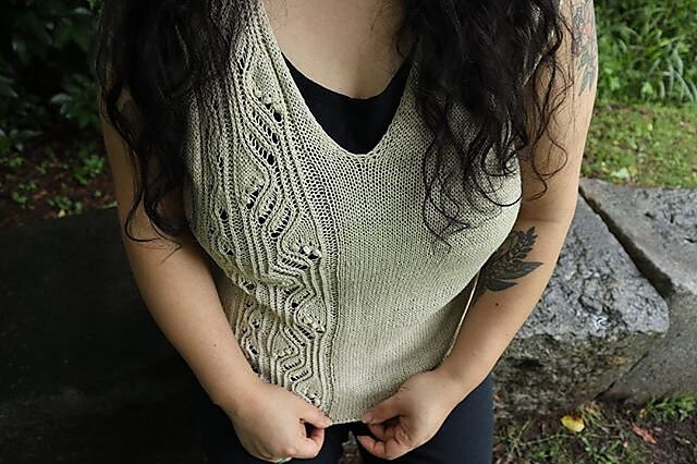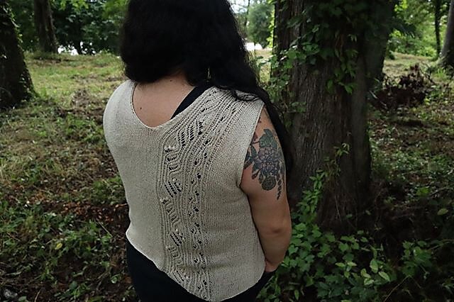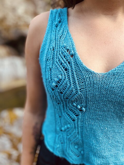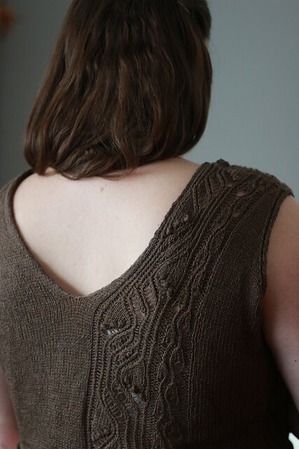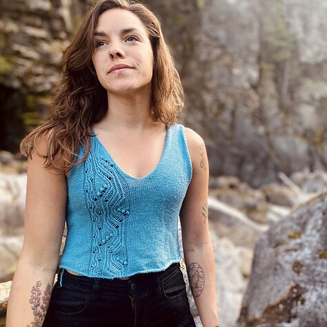SOL is a tank for the summer solstice, designed to celebrate the healing power of creativity and the warmth of the sun on your body. With simple bottom-up construction, this tank features an original asymmetric lace panel inspired by chestnut blossoms...