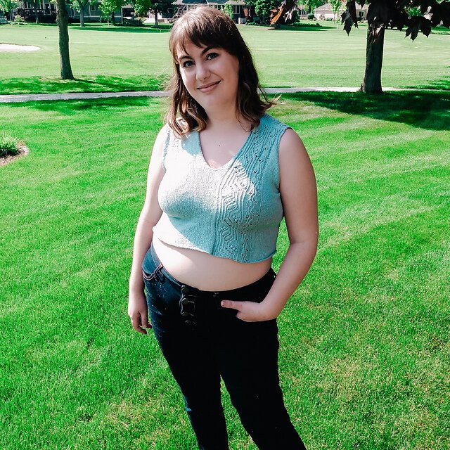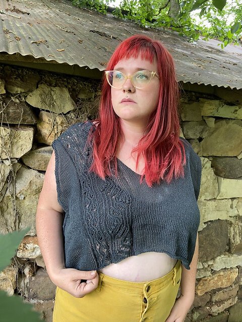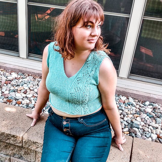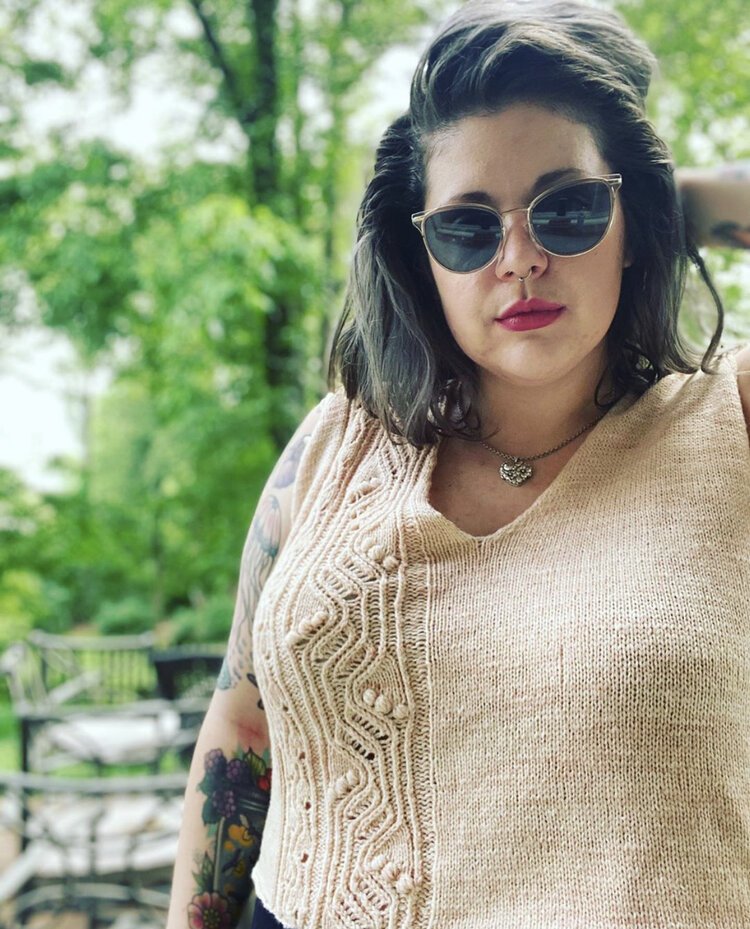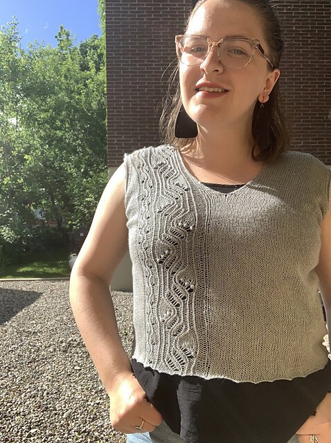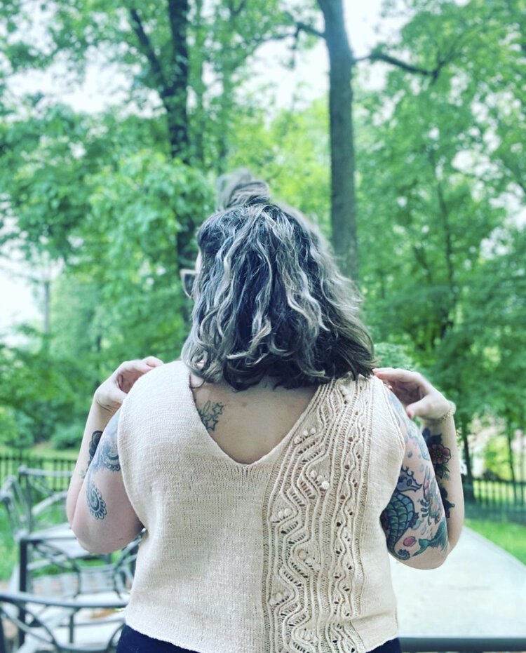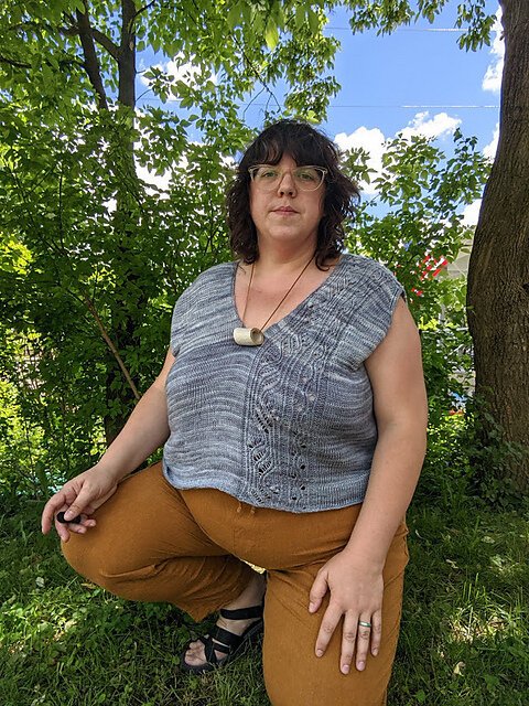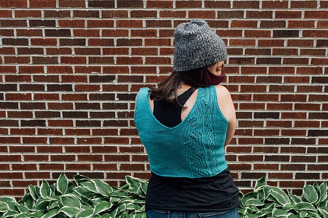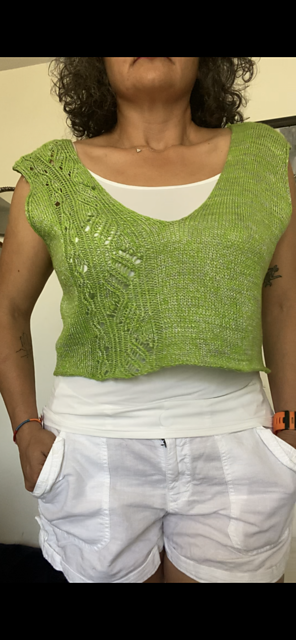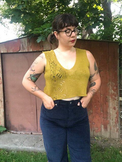 SOL is a tank for the summer solstice, designed to celebrate the healing power of creativity and the warmth of the sun on your body. With simple bottom-up construction, this tank features an original asymmetric lace panel inspired by chestnut blossoms...