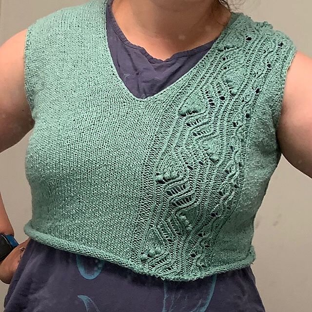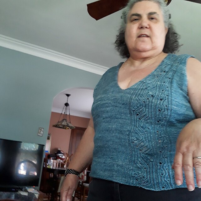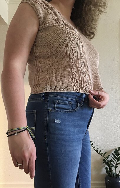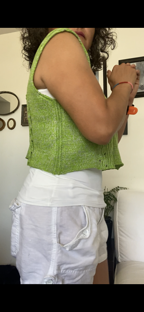 Modifications: added length to the straps for deeper armholes, worked 10.25β straps
