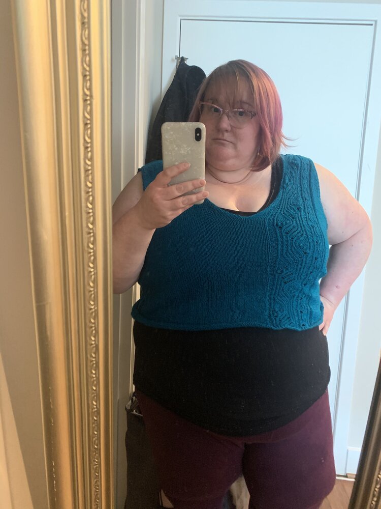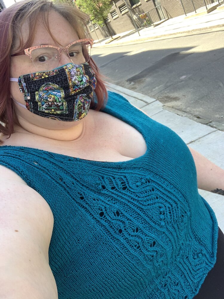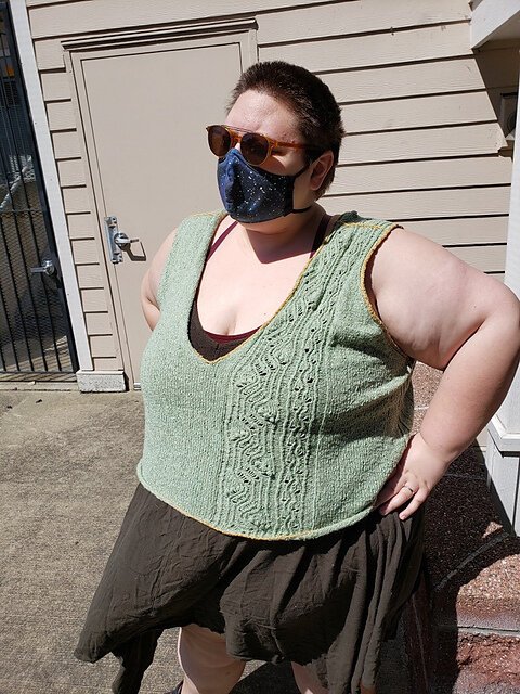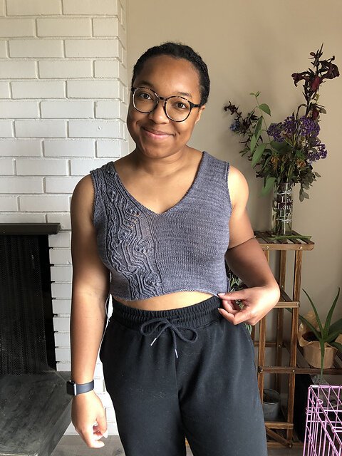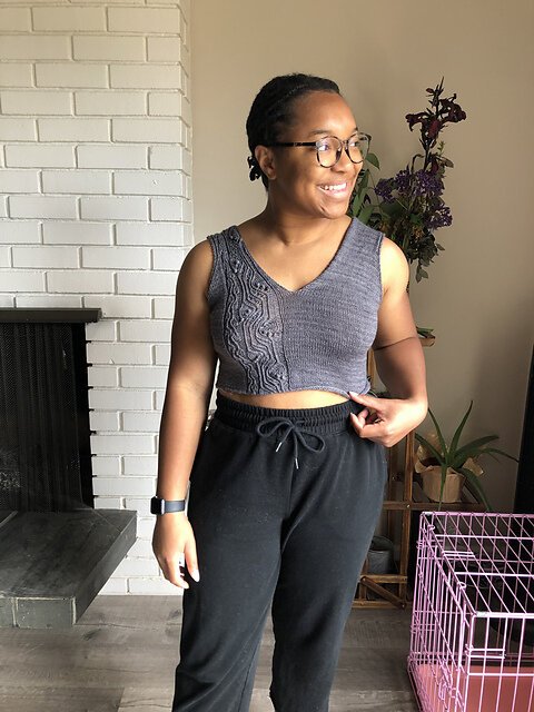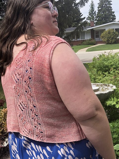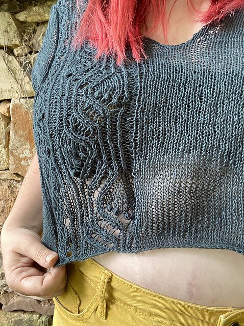 Modifications: added hip shaping and length to the straps (details on Ravelry project page)