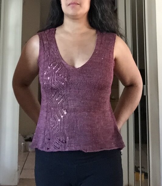 Modifications: shortened the body, lengthened the straps by 2β, didn't do neck/armhole edging