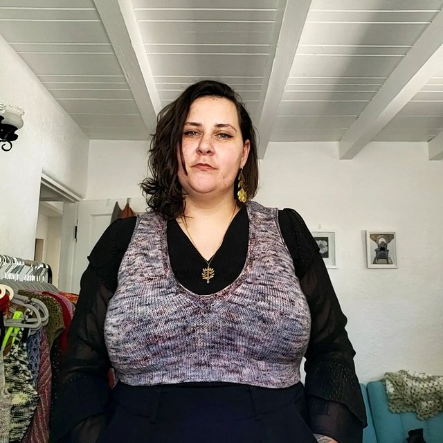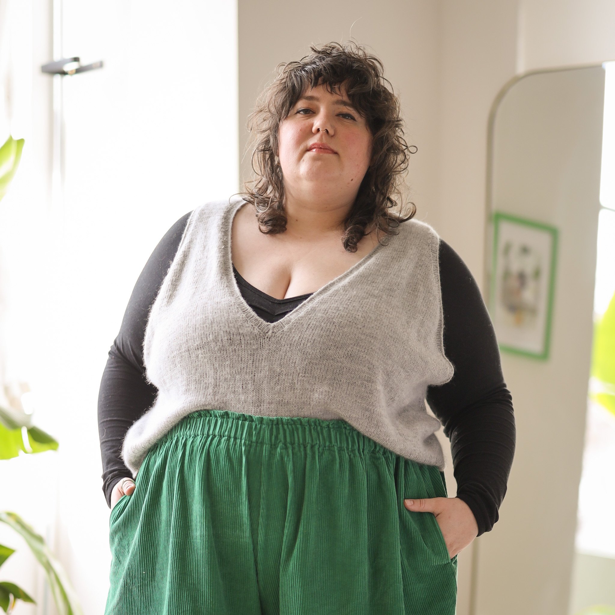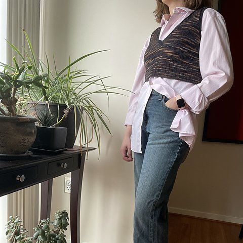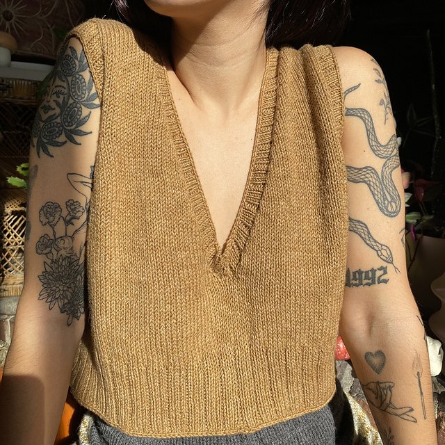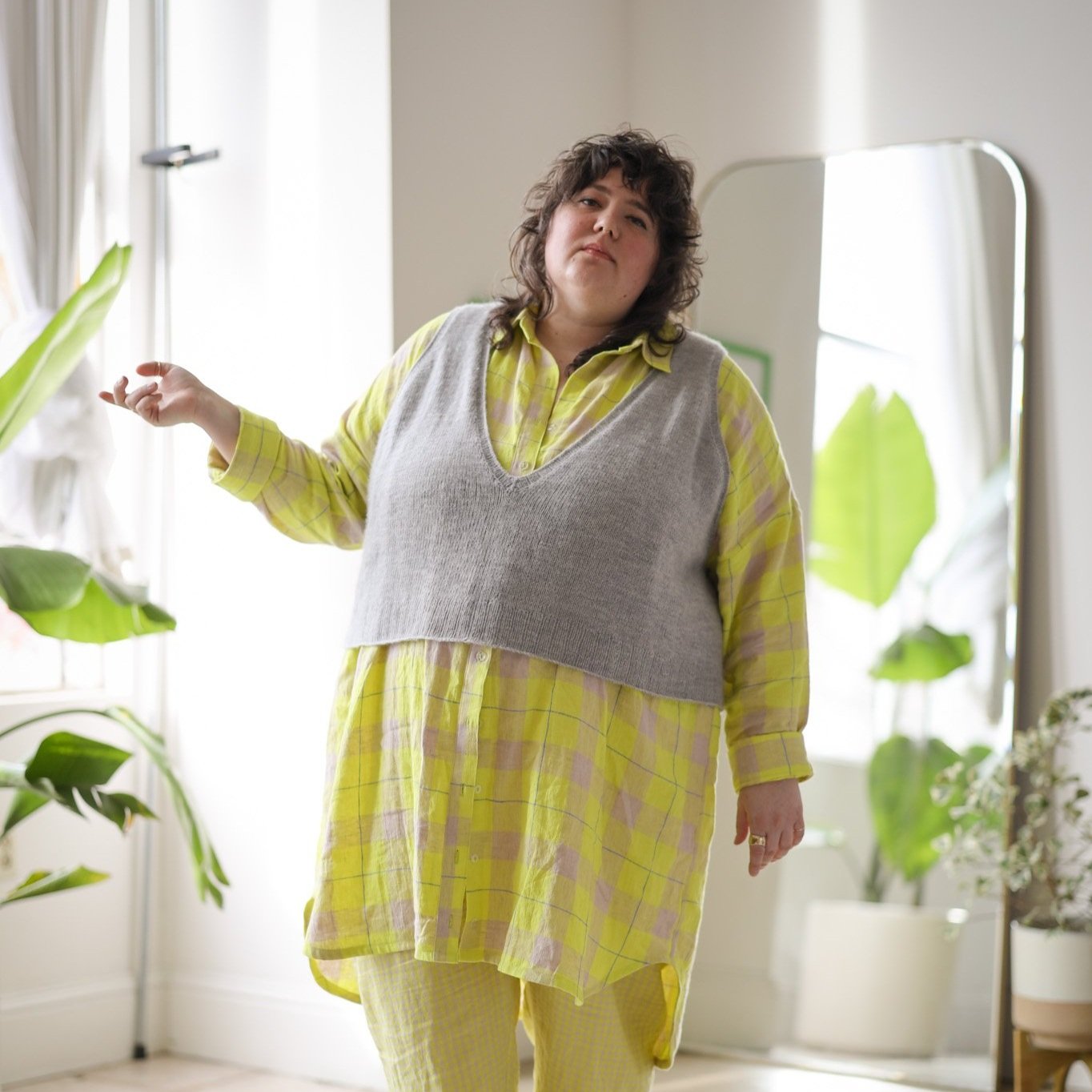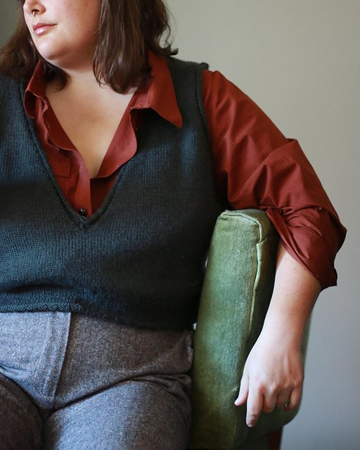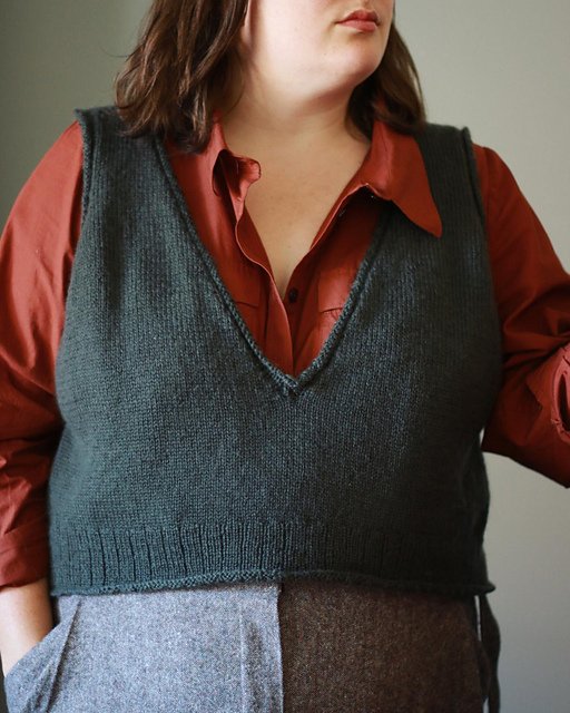 STRATA is the ultimate knit layering piece. This vest combines timeless simplicity with four-seasons versatility for a piece that works equally well as a standalone tank, under your favorite overalls, over a drapey blouse or gathered dress, or under a partially unbuttoned duster...