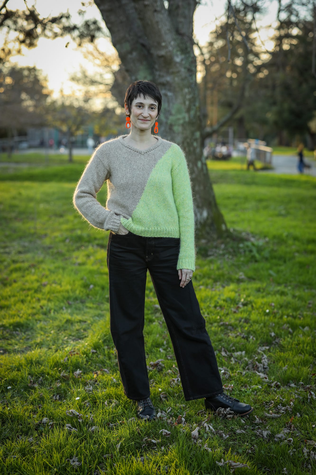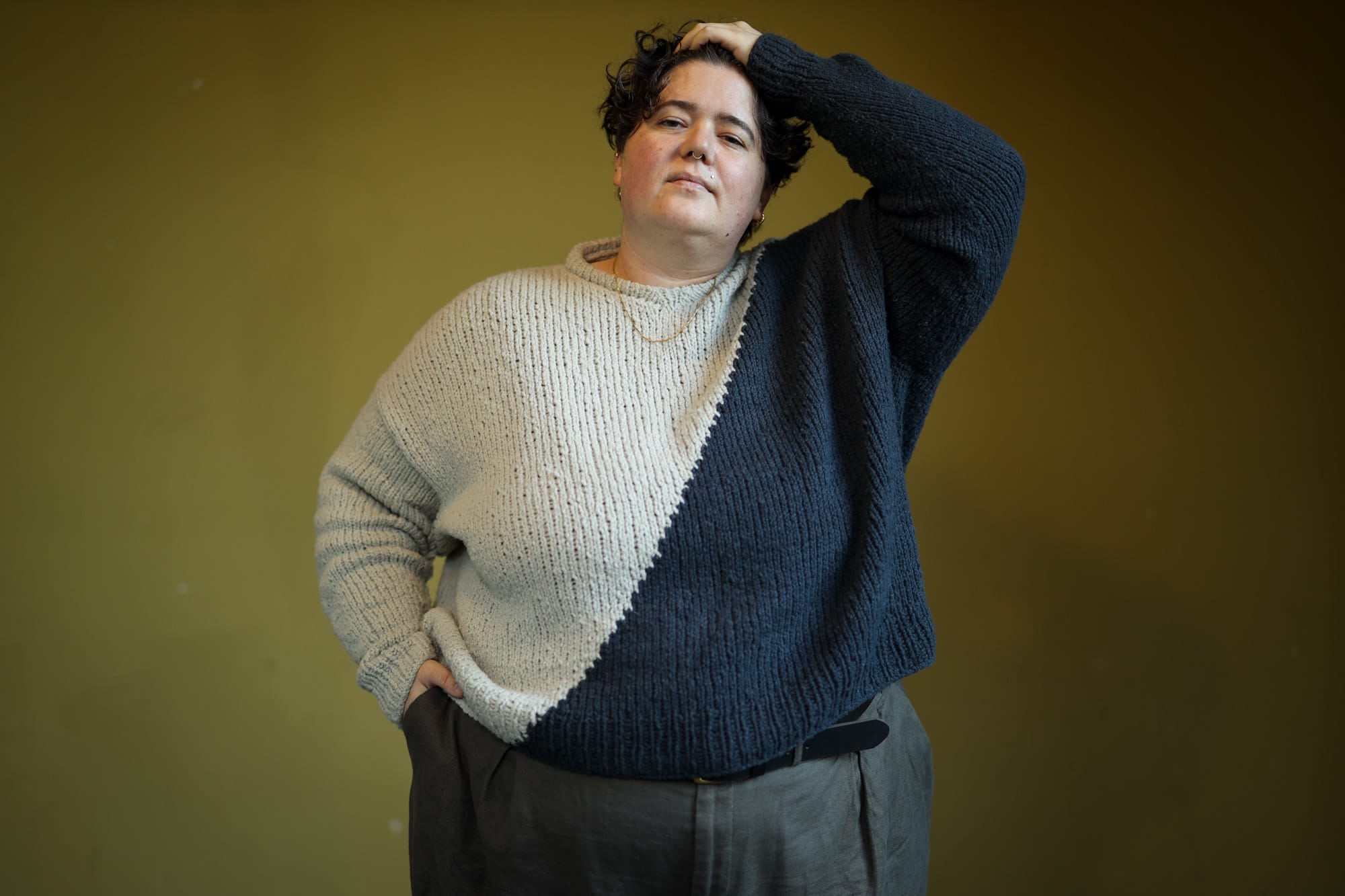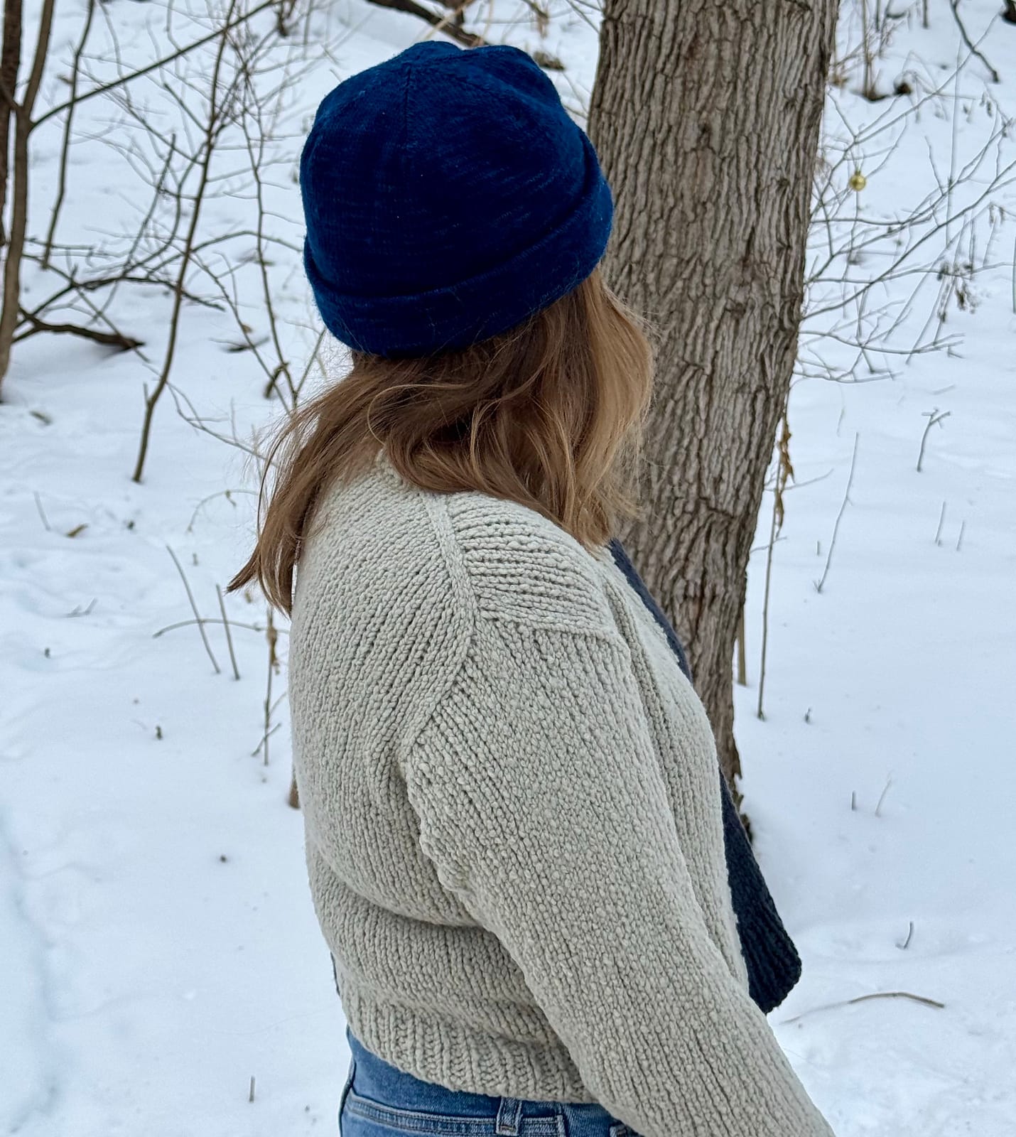 I am so grateful to Black Squirrel, my local yarn shop in Berkeley, California, for supporting me through this design! They have plenty of White Gum Wool Bouclé in stock, as well as The Wandering Flock Fluff, which is the yarn test knitter Bess used.