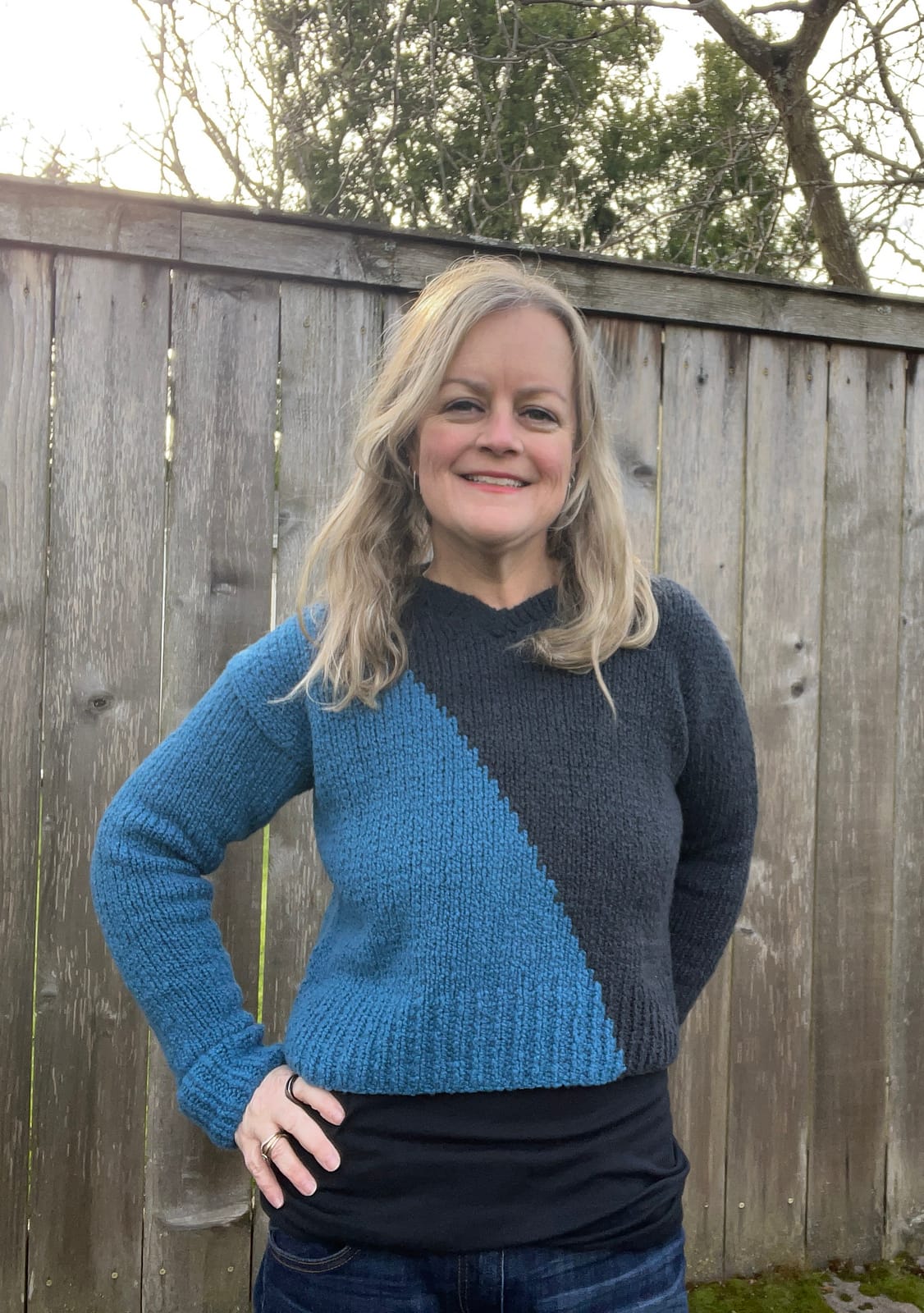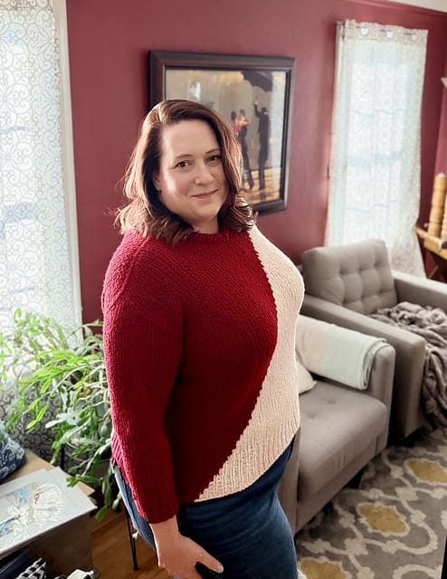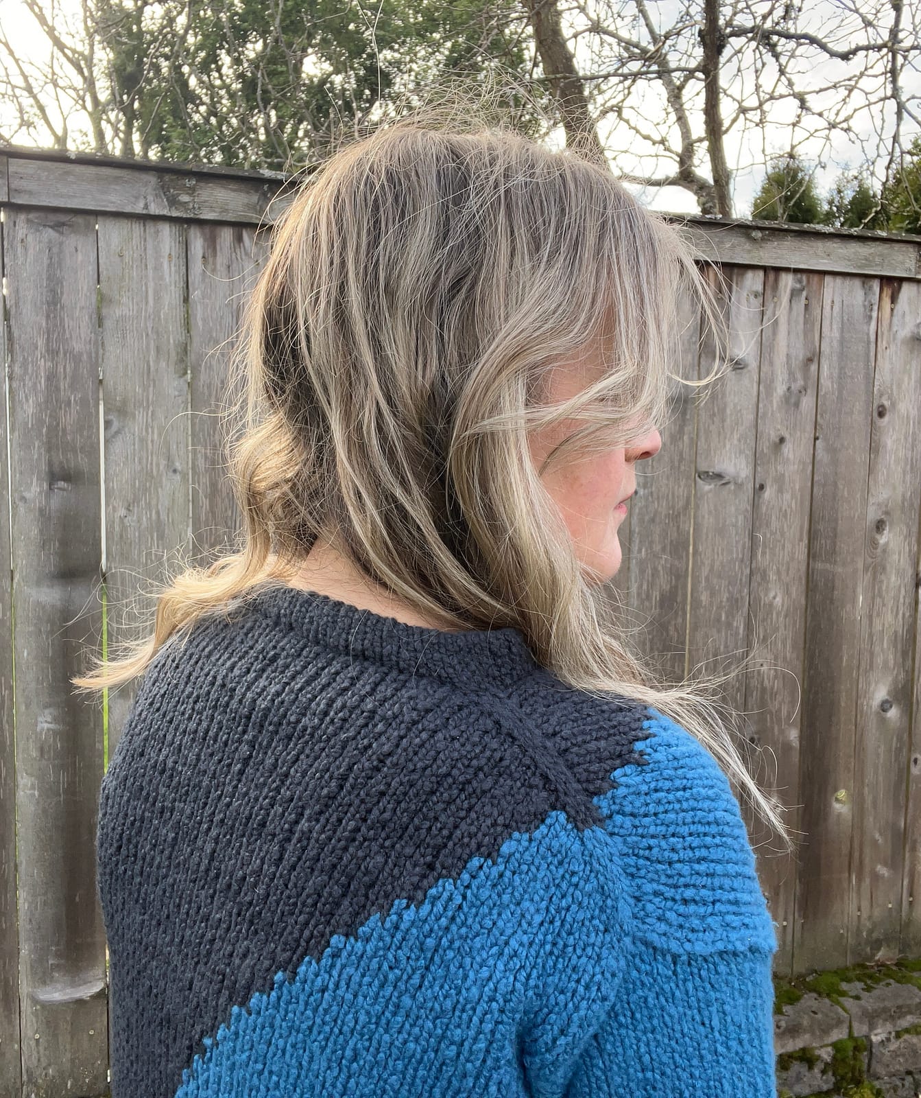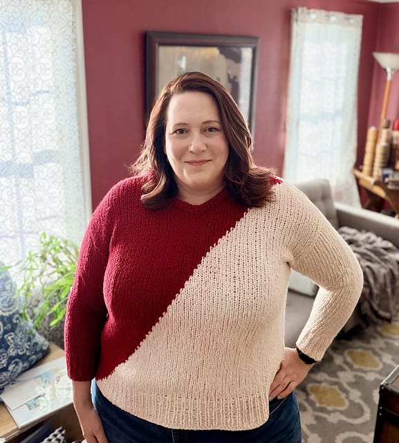 This sweater is a celebration of simplicity — from the top-down European drop shoulder construction to the diagonal color-blocked intarsia across the body, this quick and easy knit makes the coziest wardrobe staple in your favorite bulky weight yarn. The pattern includes instructions for 9 sizes, and both charted and written instructions for the intarsia.