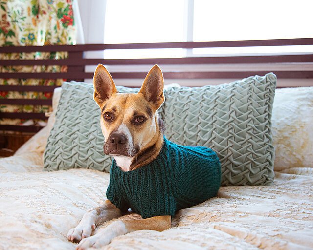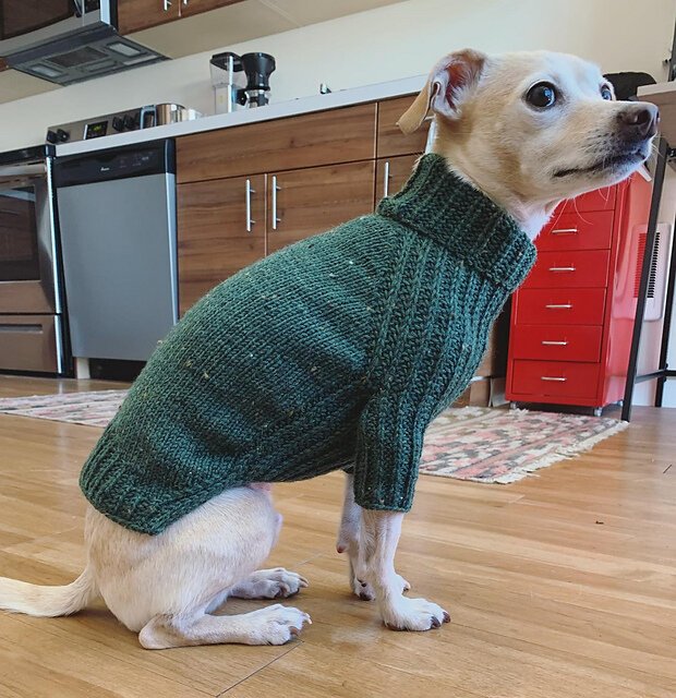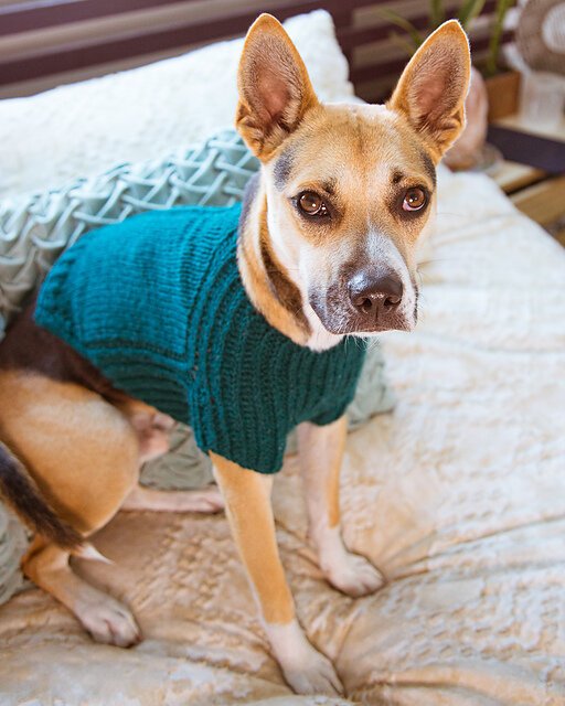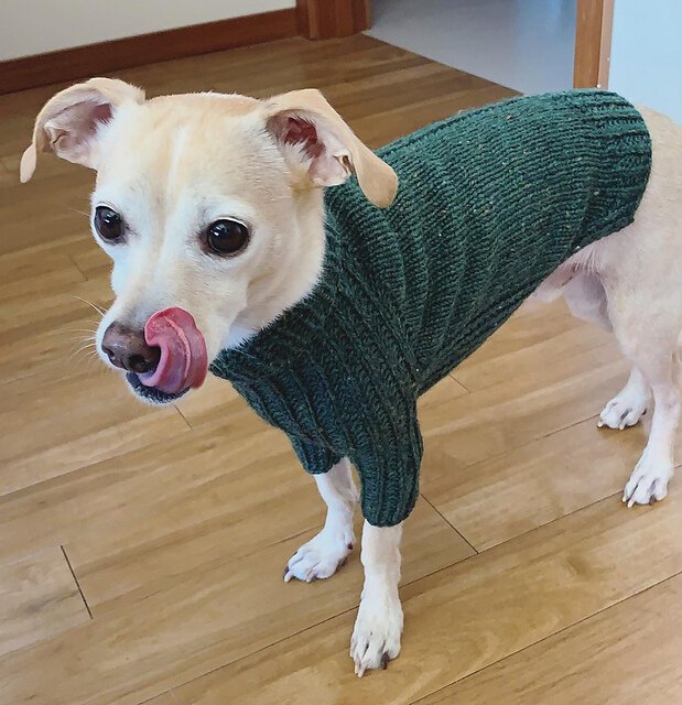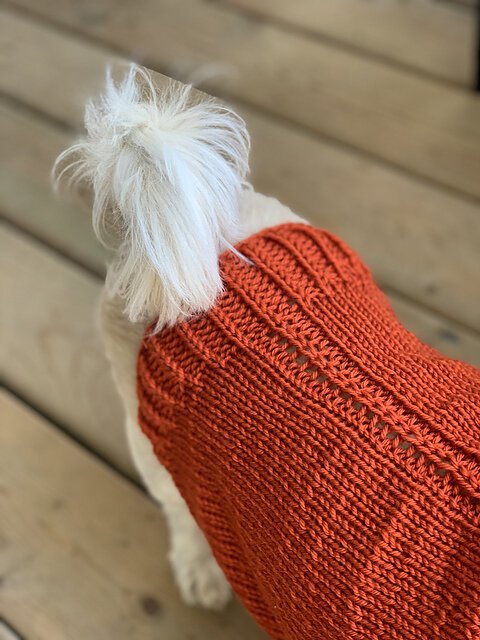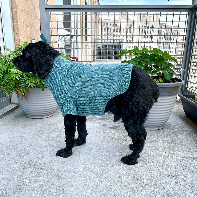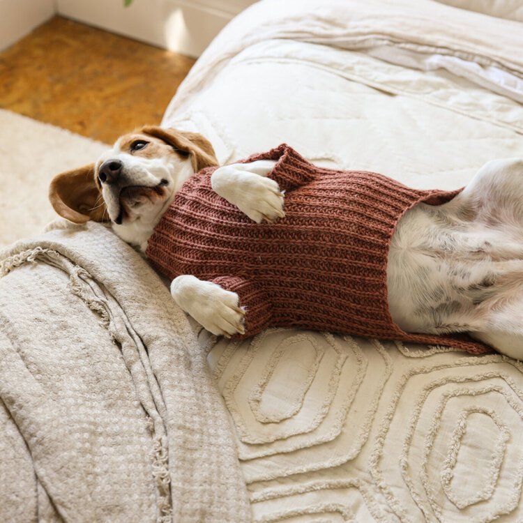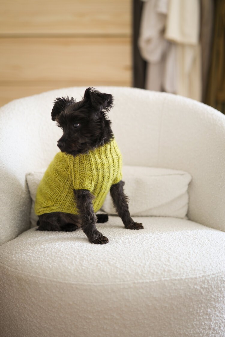 URSA CANIS is a fresh take on a classic look for your pup with clean lines and intuitive shaping. This sweater features seamless, top-down construction, so you can try it on for fit as you go, and simple half-brioche detailing across the underside and legs...