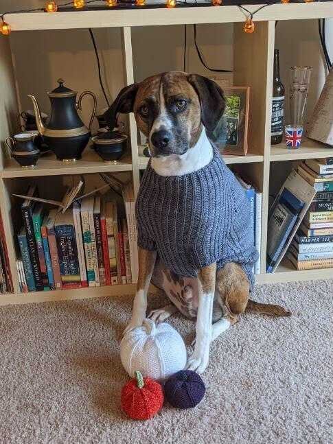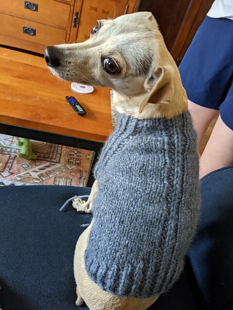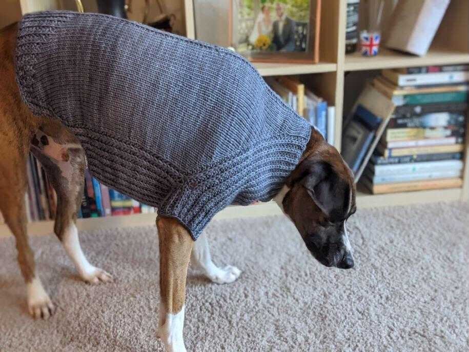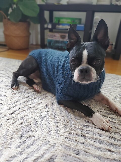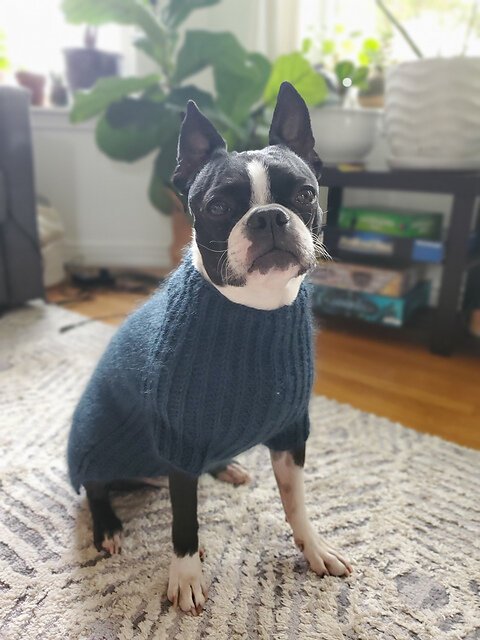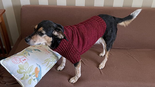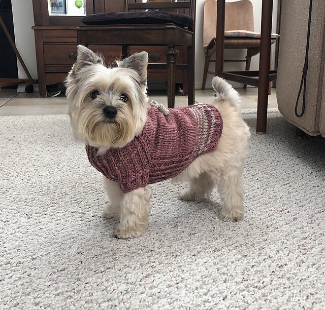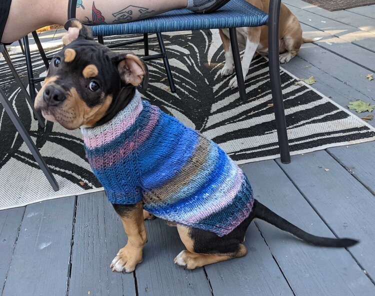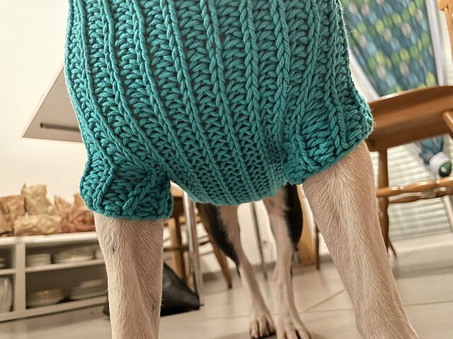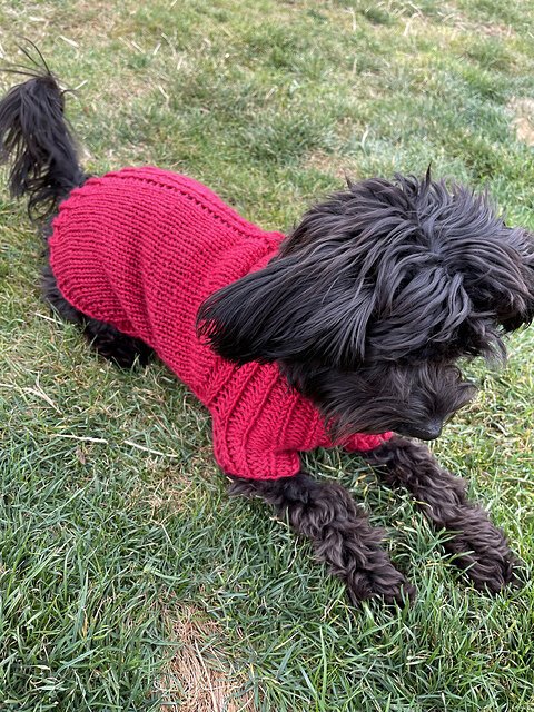 URSA CANIS is a fresh take on a classic look for your pup with clean lines and intuitive shaping. This sweater features seamless, top-down construction, so you can try it on for fit as you go, and simple half-brioche detailing across the underside and legs...