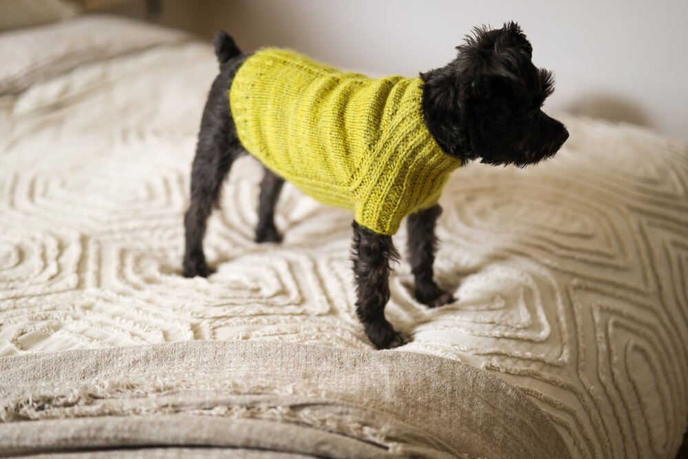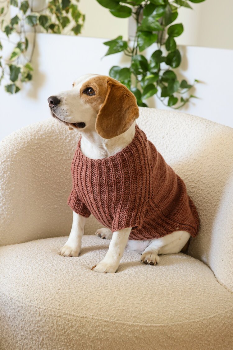 URSA CANIS is a fresh take on a classic look for your pup with clean lines and intuitive shaping. This sweater features seamless, top-down construction, so you can try it on for fit as you go, and simple half-brioche detailing across the underside and legs, creating a stretchy, snug fit for the belly. With 12 sizes and an optional harness hole, this pattern is designed to be a go-to for knitters with cold-prone furry companions.